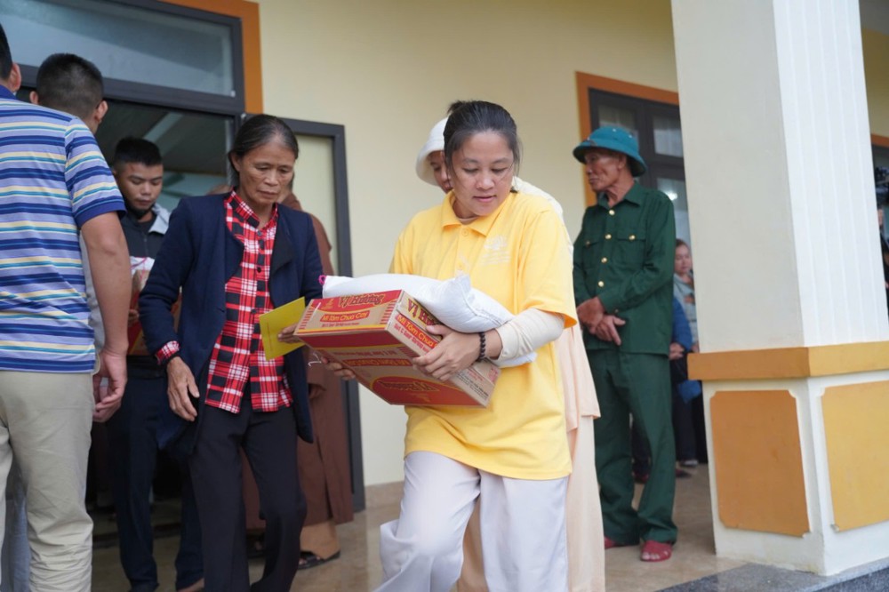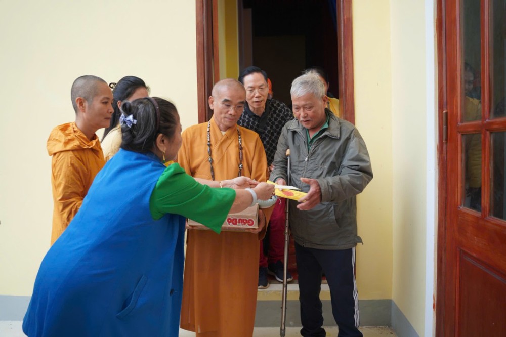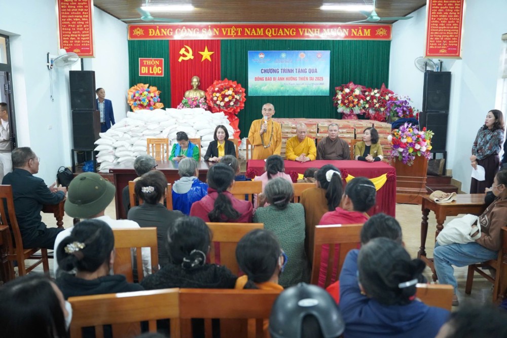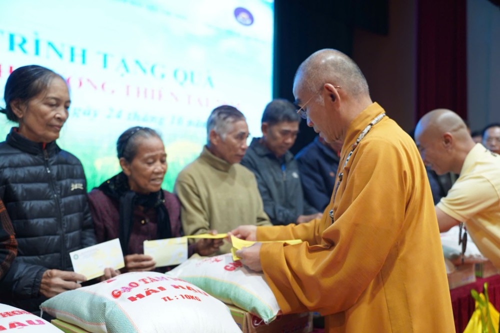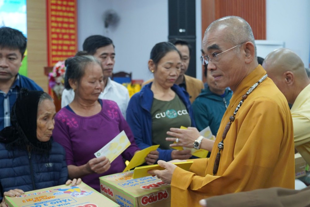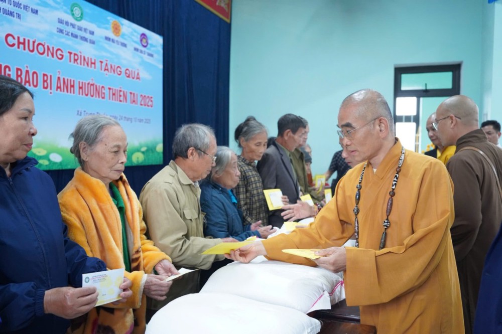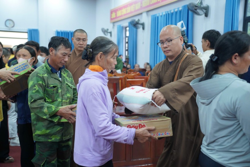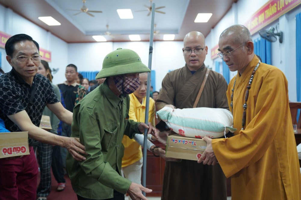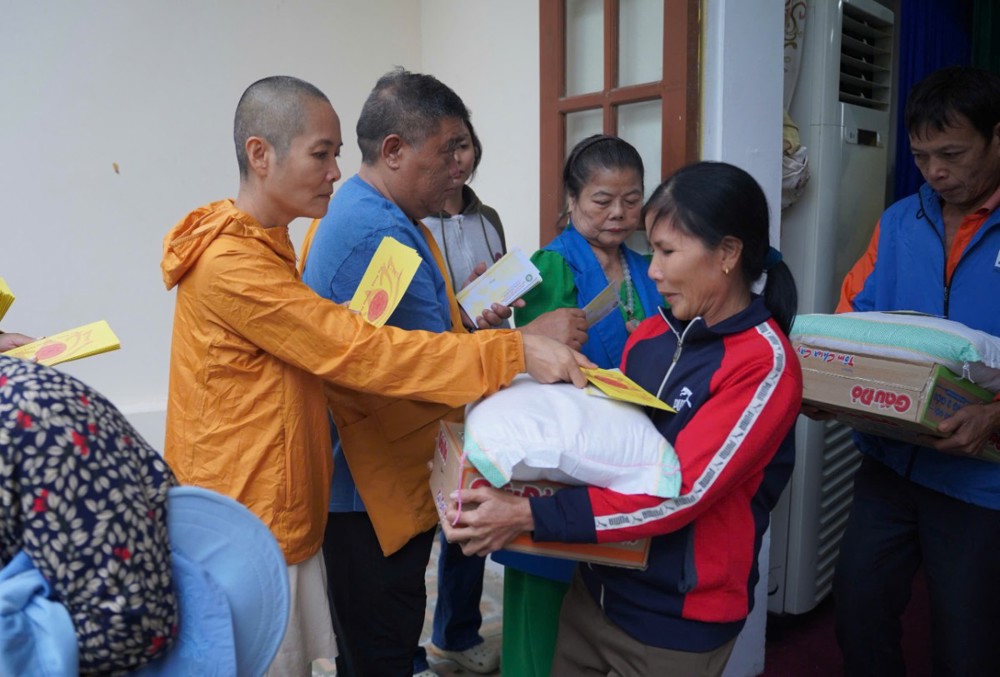 Tại các điểm đến, Thượng tọa Thích Tuệ Hải – Phó ban Kinh tế Tài chính Trung ương, Phó ban Từ thiện Xã hội Trung ương GHPGVN, thay mặt đoàn đã ân cần thăm hỏi, động viên bà con chịu ảnh hưởng bởi thiên tai. Thượng tọa bày tỏ niềm cảm thông sâu sắc trước những mất mát mà người dân phải gánh chịu, đồng thời nguyện cầu hồng ân Tam Bảo gia hộ để bà con sớm vượt qua khó khăn, ổn định cuộc sống.