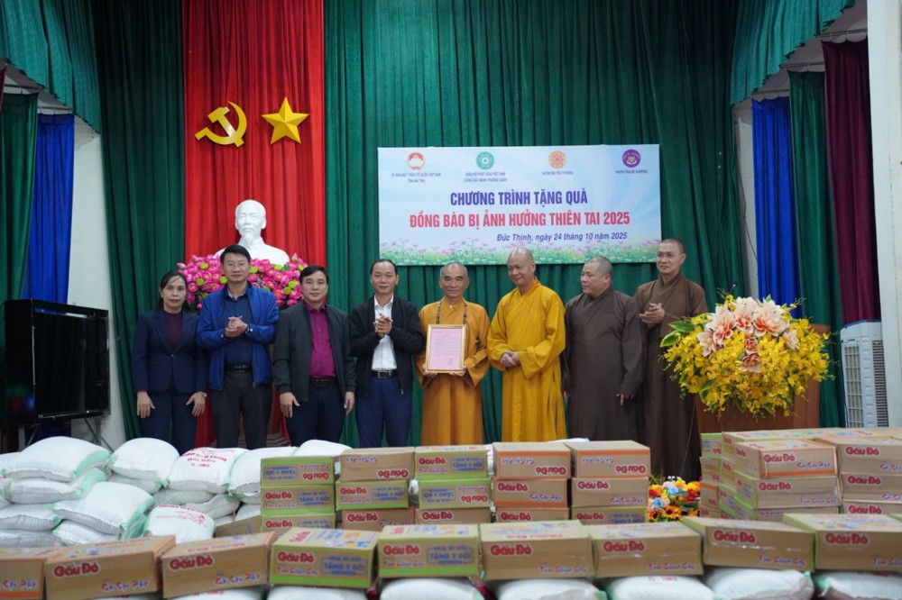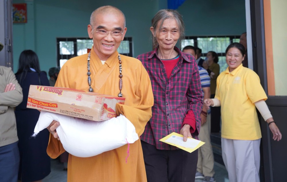 Trong dịp này, Thượng tọa cũng gửi lời tri ân đến nhóm thiện nguyện Sharing của bà Mai Thị Hạnh - phu nhân nguyên Chủ tịch nước Trương Tấn Sang cùng nhóm Mãi Yêu Thương – chùa Long Hương và quý mạnh thường quân đã chung tay góp sức cho chuyến cứu trợ. Đồng thời, Thượng tọa trân trọng cảm ơn chính quyền các cấp đã hỗ trợ, tạo điều kiện thuận lợi để đoàn có thể trao tận tay bà con những phần quà thiết thực và đầy nghĩa tình.