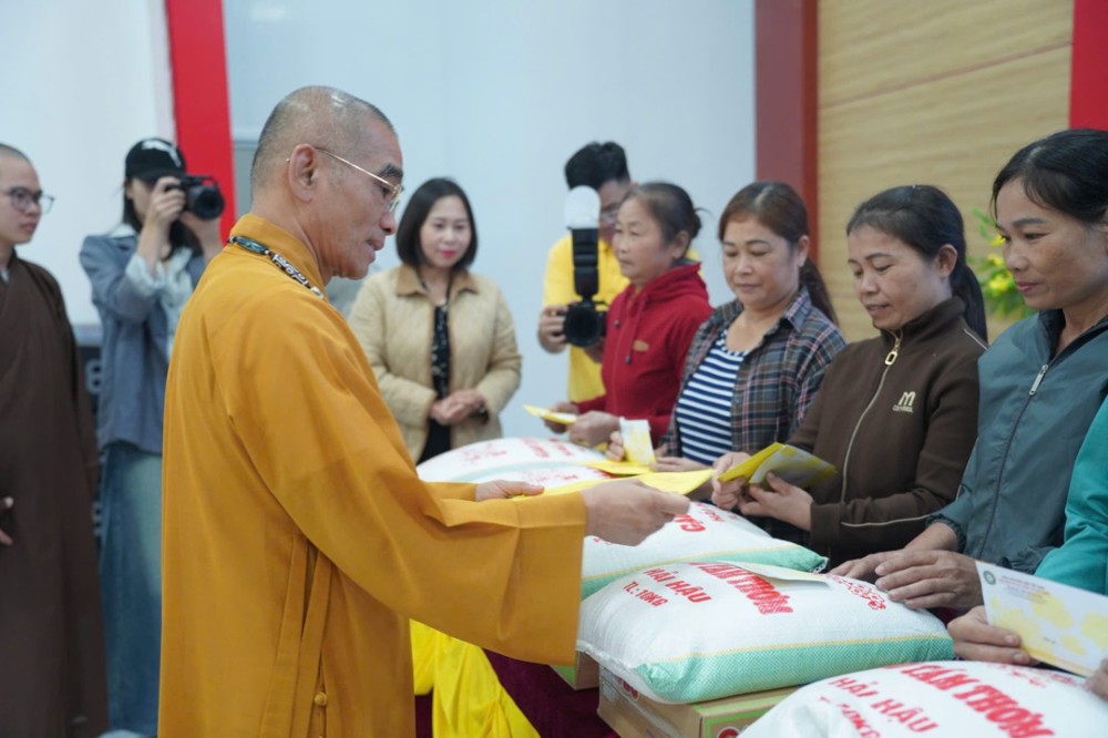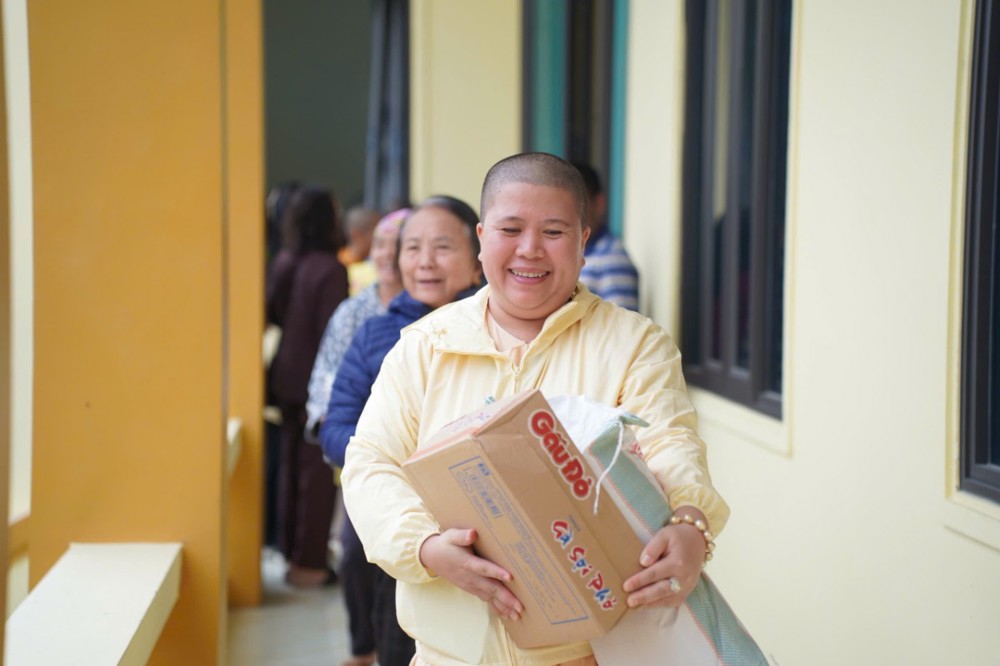 Những phần quà trao tay không chỉ là sự sẻ chia vật chất mà còn gửi gắm tấm lòng yêu thương, tinh thần nhân ái của Tăng Ni, Phật tử khắp nơi.