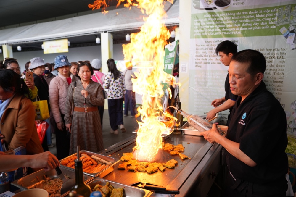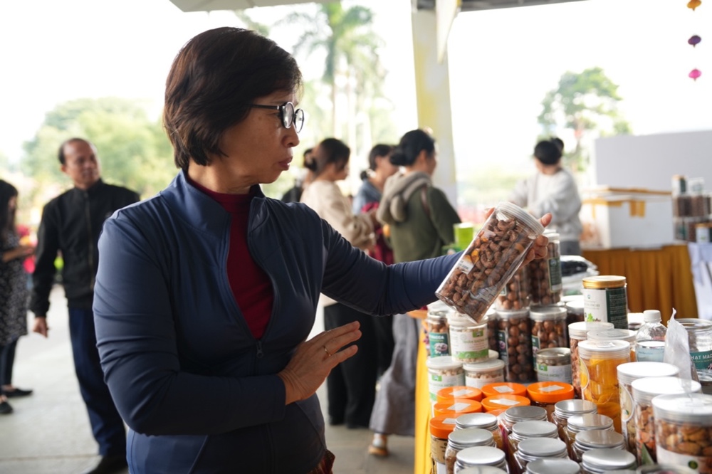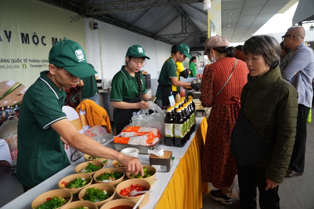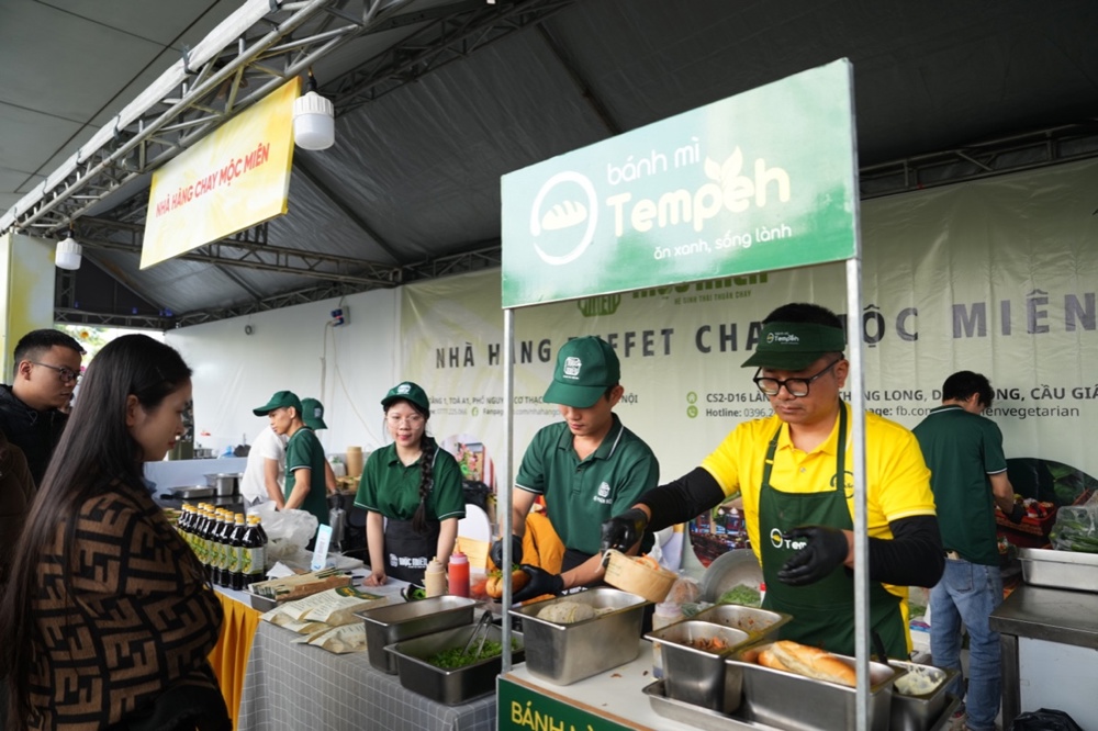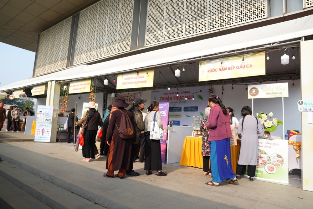 Đến với các gian hàng ẩm thực cùng thực đơn phong phú như cơm chay, bánh mì chay, các sản phẩm từ cốm Hà Nội, nhiều loại nước uống và thực phẩm bổ dưỡng; thực khách cảm thấy rất hứng thú. Không chỉ đáp ứng nhu cầu ẩm thực, các gian hàng còn mang đến trải nghiệm thưởng thức những món ăn thanh đạm, lành mạnh, phù hợp với tinh thần từ bi của Phật giáo. Trong không khí thân thiện và ấm áp, khu ẩm thực trở thành điểm giao lưu, nghỉ chân lý tưởng, góp phần làm nên sự trọn vẹn và sinh động cho không gian triển lãm.
