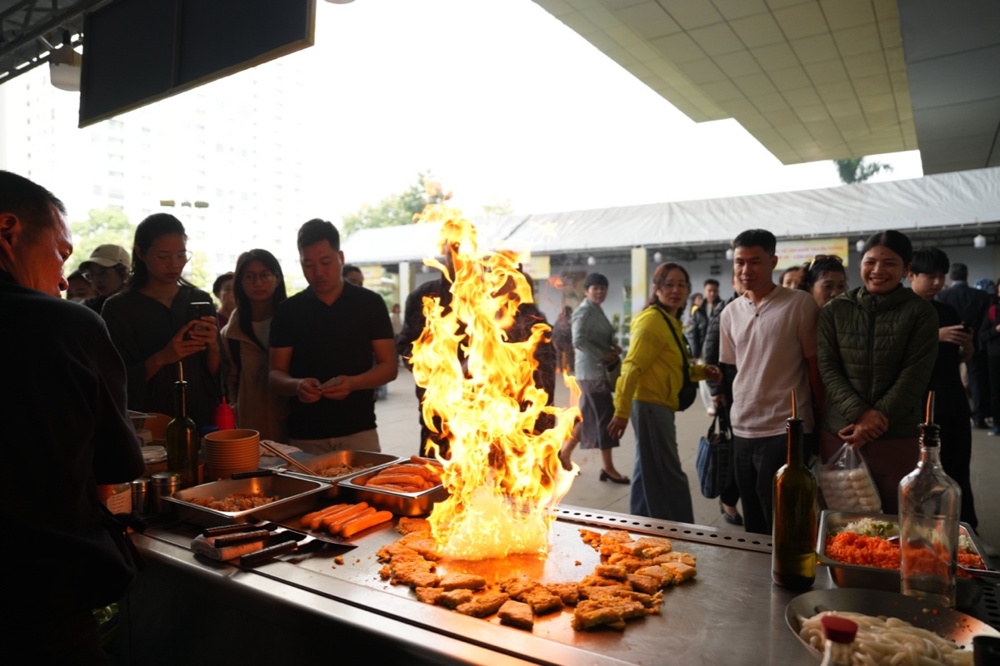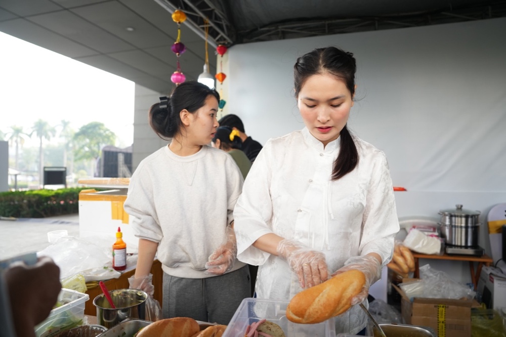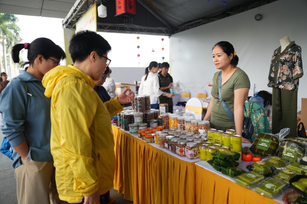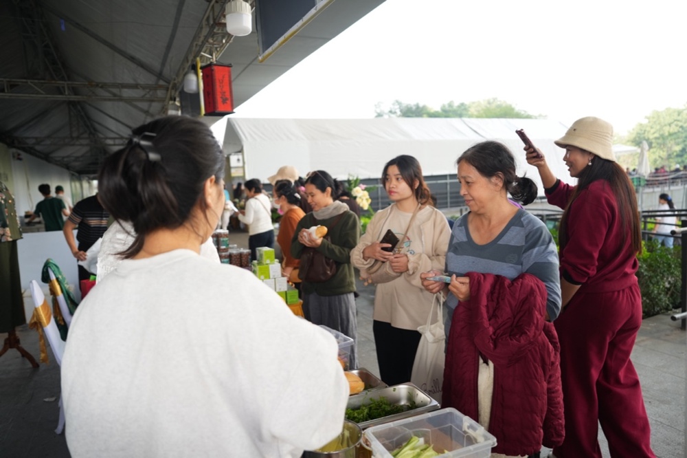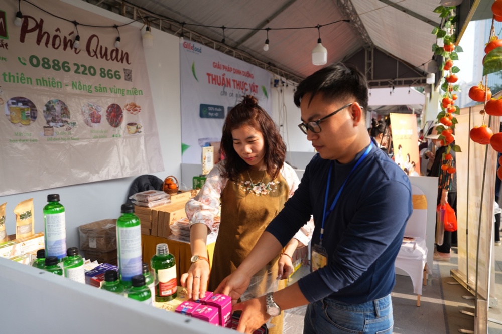 Đến với các gian hàng ẩm thực cùng thực đơn phong phú như cơm chay, bánh mì chay, các sản phẩm từ cốm Hà Nội, nhiều loại nước uống và thực phẩm bổ dưỡng; thực khách cảm thấy rất hứng thú. Không chỉ đáp ứng nhu cầu ẩm thực, các gian hàng còn mang đến trải nghiệm thưởng thức những món ăn thanh đạm, lành mạnh, phù hợp với tinh thần từ bi của Phật giáo. Trong không khí thân thiện và ấm áp, khu ẩm thực trở thành điểm giao lưu, nghỉ chân lý tưởng, góp phần làm nên sự trọn vẹn và sinh động cho không gian triển lãm.