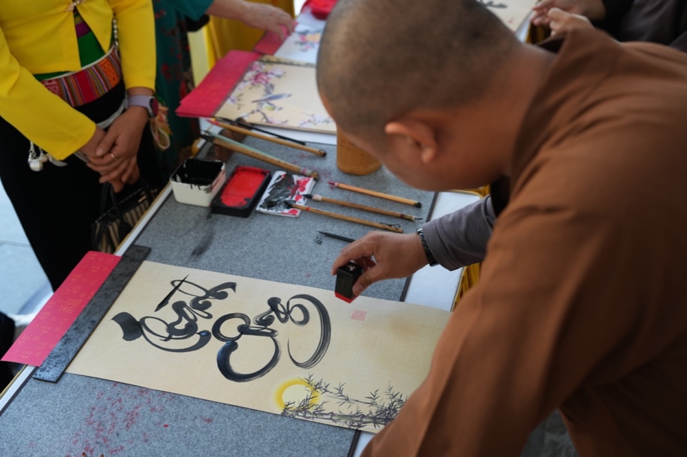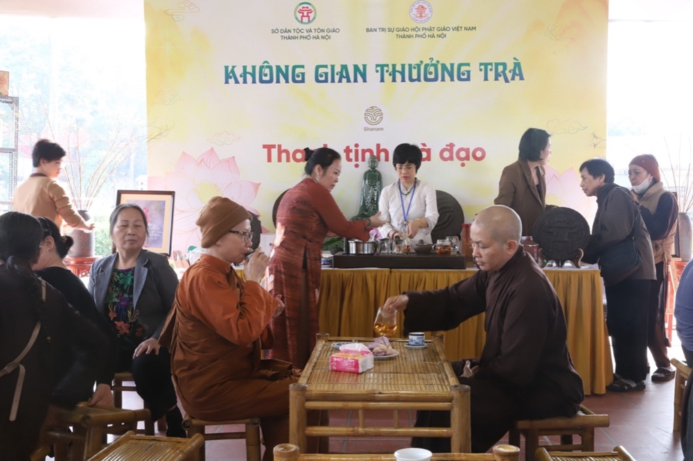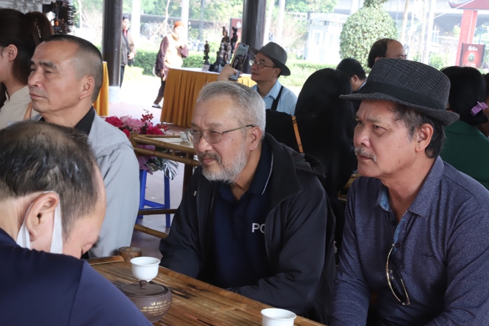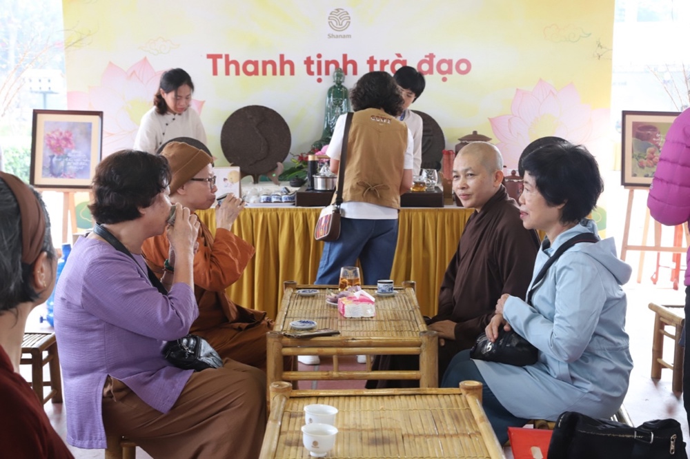 Đặc biệt, không gian thiền trà cũng được nhiều quý Phật tử dừng chân. Đây là nơi vừa thưởng trà, vừa thực hành chính niệm và chiêm nghiệm nội tâm. Giữa những tác phẩm nghệ thuật mang tinh thần giác ngộ, gian trà hiện diện như một điểm dừng lặng, nơi con người tạm buông bỏ nhịp sống vội vã để trở về với hơi thở, với nét đẹp thưởng trà tao nhã, an yên.