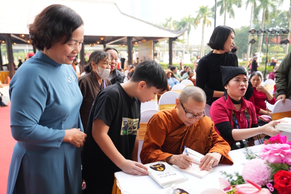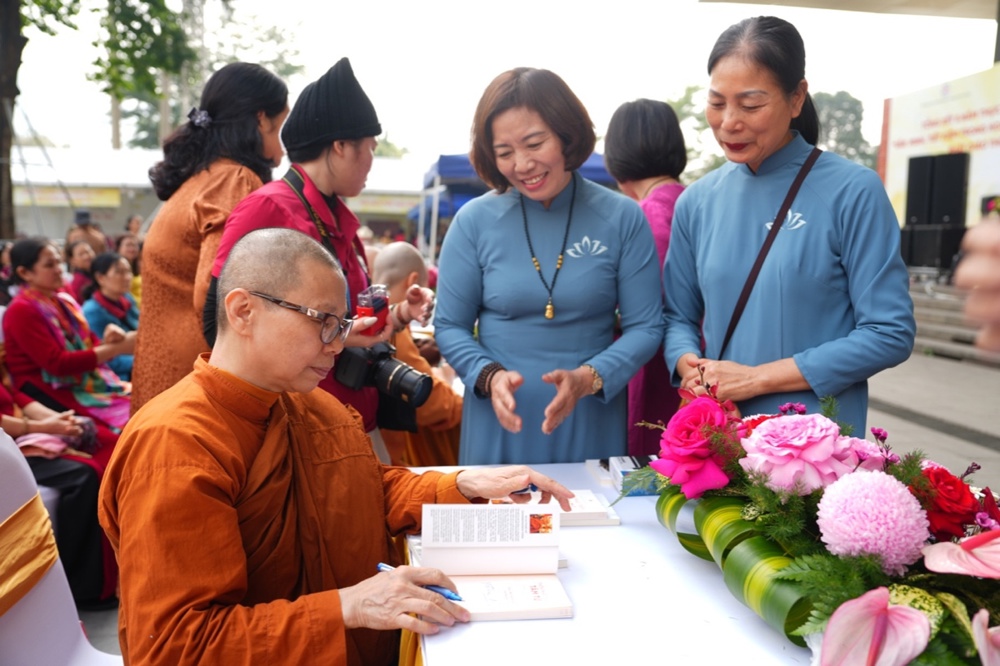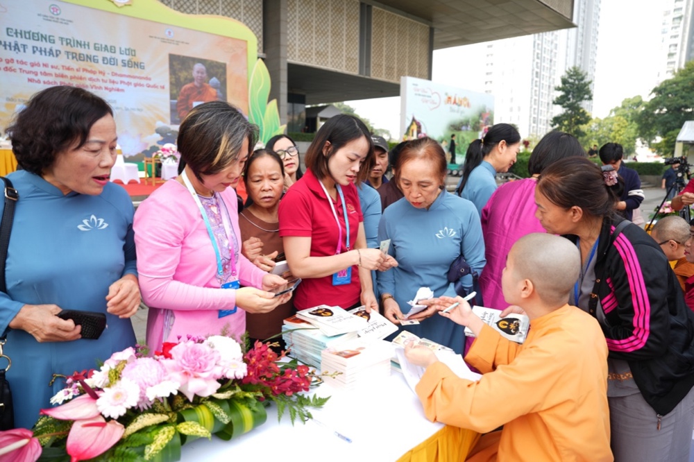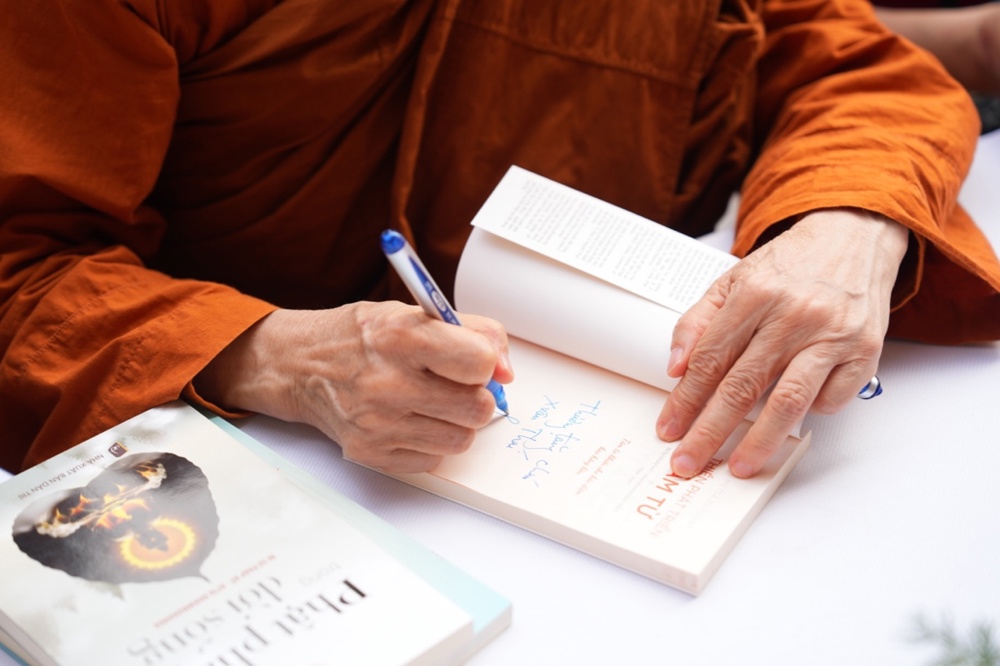 Sau buổi giao lưu, giới thiệu cuốn sách “Phật pháp trong đời sống”, Ni sư Pháp Hỷ đã ký tặng từng quyển dành cho những Phật tử quan tâm; như một kỉ niệm đẹp nhằm lan toả văn hoá đọc đến quý độc giả.