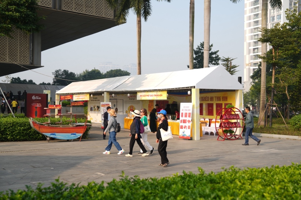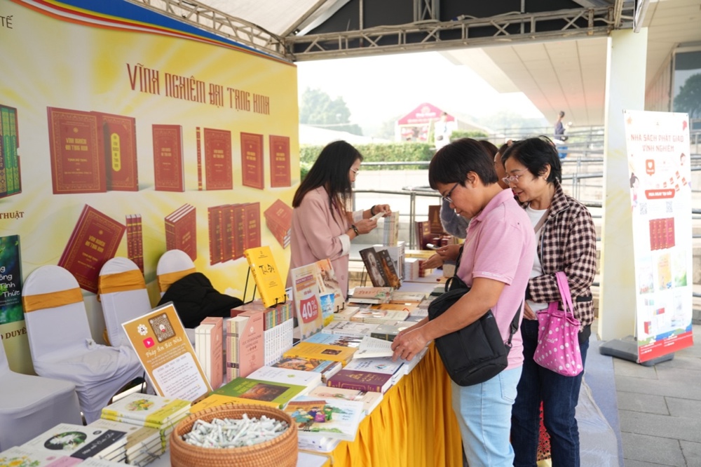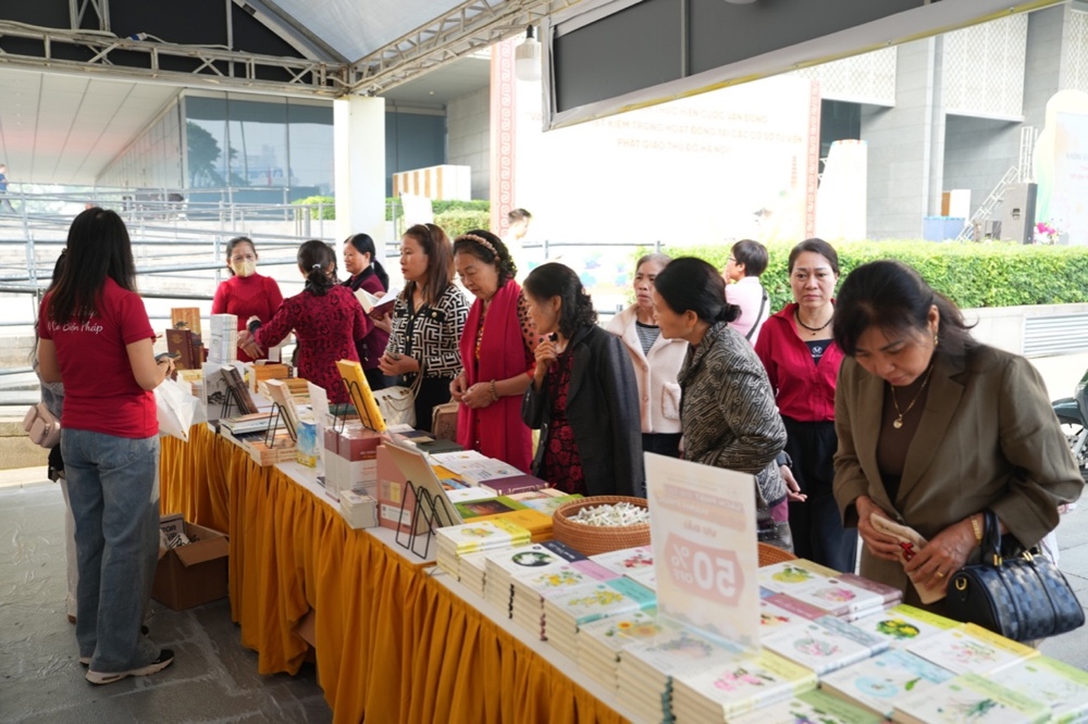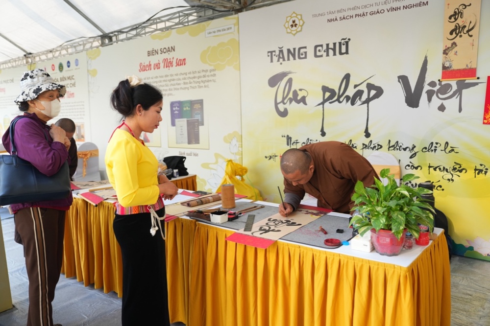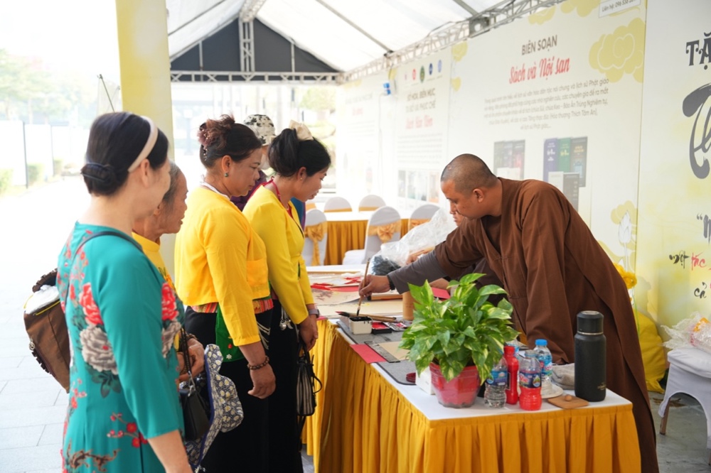 Bên cạnh không gian giao lưu, giới thiệu sách “Phật pháp trong đời sống”; các gian hàng trưng bày nghệ thuật Phật giáo, triển lãm ảnh cũng thu hút đông đảo những vị khách gần xa đến tham quan.