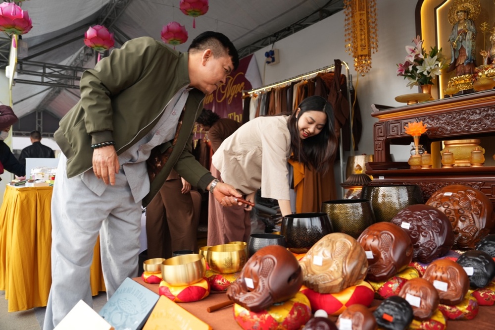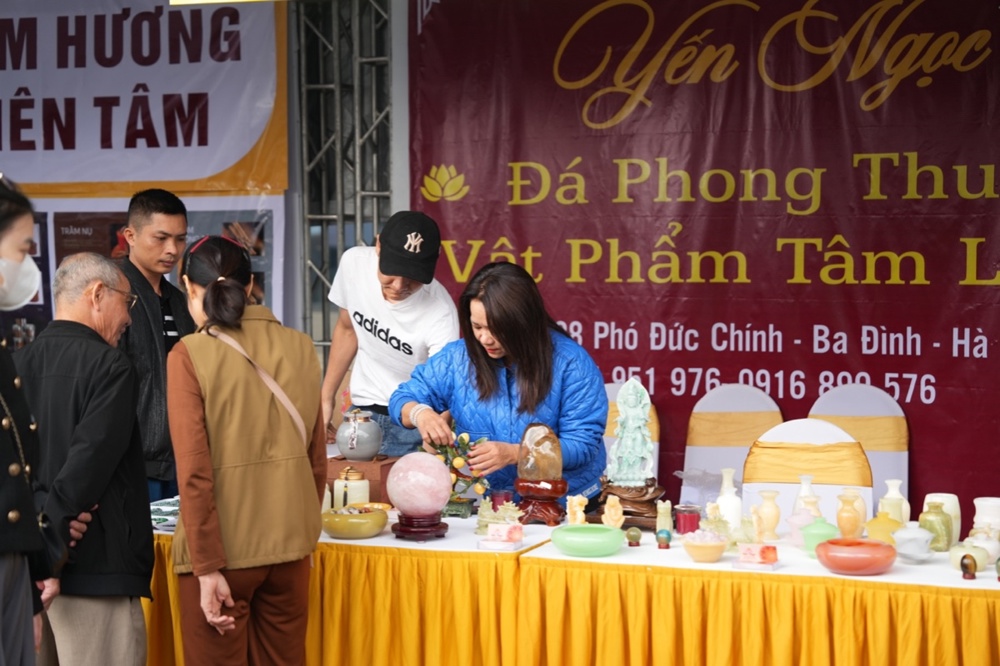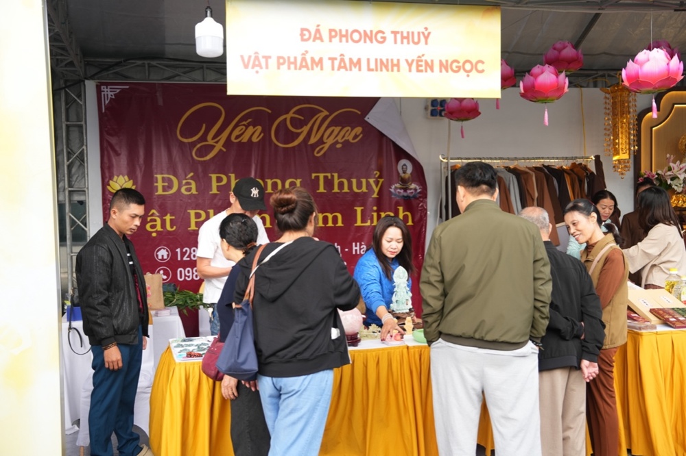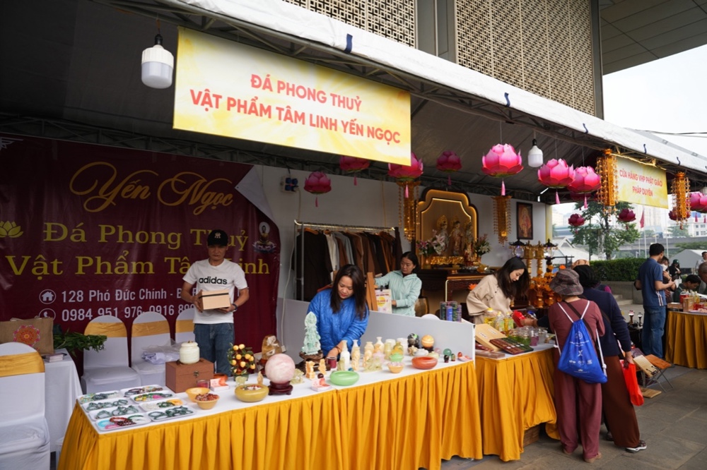 Các gian hàng vật phẩm Phật giáo cũng vô cùng đa dạng, phong phú. Tại đây, khách tham quan có thể chiêm ngưỡng và thỉnh về những pháp khí, kinh sách, tượng Phật hay vật phẩm tu tập được chế tác trang nghiêm, mang đậm giá trị tâm linh và văn hóa.