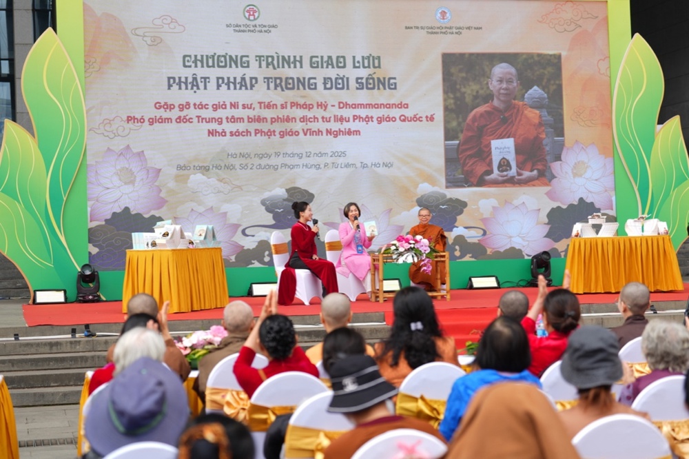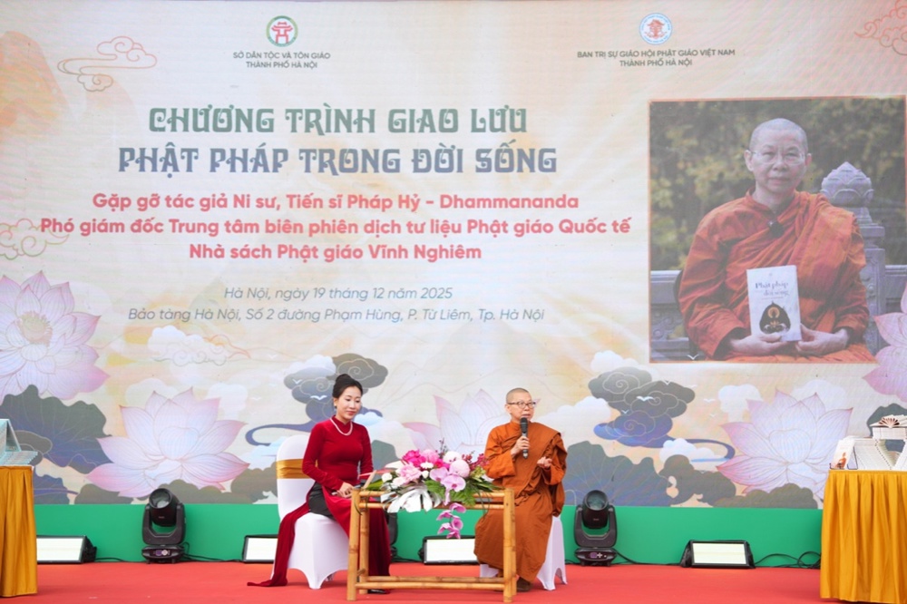 Sáng ngày 19/12/2025 (nhằm ngày 30/10 Ất Tỵ), nằm trong chuỗi hoạt động ý nghĩa của Lễ tổng kết 5 năm Cuộc vận động “Văn minh – Tiết kiệm tại các cơ sở tự viện Thủ đô Hà Nội” do Sở Dân tộc và Tôn giáo thành phố Hà Nội phối hợp với BTS GHPGVN thành phố tổ chức, BTC đã dành một không gian sâu lắng để giới thiệu và giao lưu về tác phẩm Phật học mang đậm hơi thở của đời sống hiện đại – cuốn sách mang tên “Phật pháp trong đời sống” của tác giả Ni sư Pháp Hỷ - Phó Giám đốc Trung tâm Biên phiên dịch Tư liệu Phật giáo Quốc tế – chùa Long Hưng, Hà Nội.