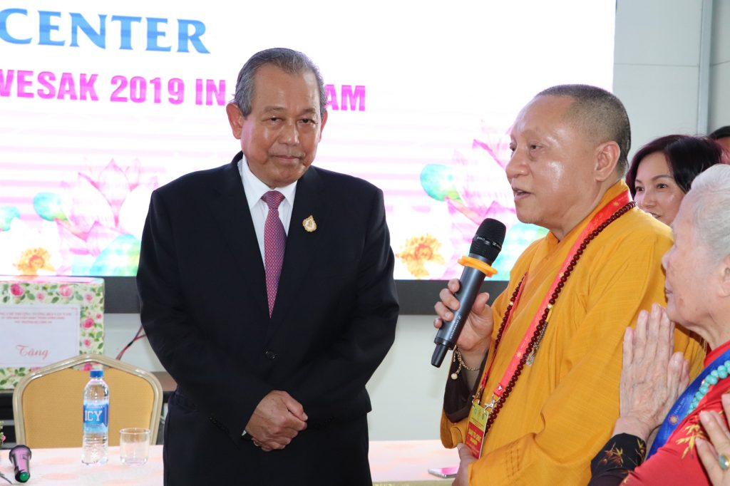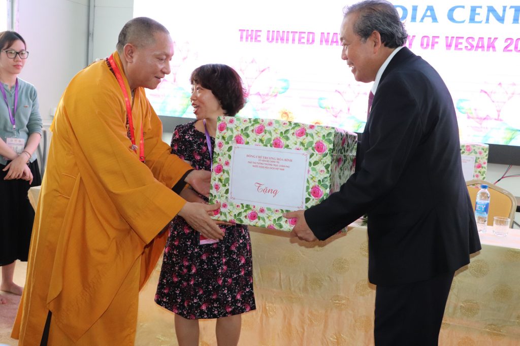 HT. Thích Gia Quang đã thay mặt Trung tâm báo chí bày tỏ lòng biết ơn đến sự quan tâm đặc biệt của Phó Thủ tướng đã dành cho nhà báo, phóng viên nói chung, Trung tâm báo chí Đại lễ nói riêng.