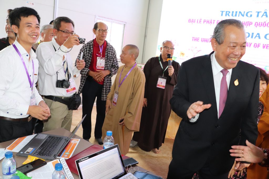 PSO - Vào lúc 12:00 ngày 14.05.2019, sau khi kết thúc phiên bế mạc của Đại lễ Phó Thủ Tướng thường trực Trương Hòa Bình đã đến thăm hỏi tất cả anh chị em nhà báo và phóng viên đang tác nghiệp tại Trung tâm báo chí của Đại lễ.