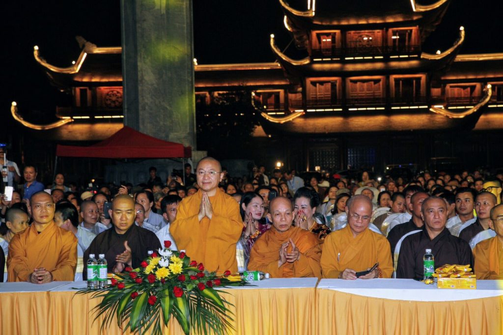 Trong niềm hoan hỷ, TT. Thích Trí Chơn – Ủy viên HĐTS, Phó trưởng Ban Văn hóa TƯ, Trưởng phân ban Tổ chức sự kiện dâng lời cảm tạ sâu sắc đến Hòa thượng Chủ tịch HĐTS, chư Tôn đức Tăng Ni, Phật tử, quý Đại biểu, quan khách. Để khép lại chương trình, chư Tôn đức thực hiện nghi thức lễ gia trì thắp sáng hoa đăng, cầu nguyện tuần lễ Phật đản thành công viên mãn. Sau đó, tất cả hướng về lễ đài cầu nguyện, hồ Tam Chúc nơi an trí bảy đóa sen hồng, khu vực trưng bày triển lãm, hội chợ văn hóa phẩm, hội chợ ẩm thực chay cùng thưởng lãm trong niềm hoan hỷ.