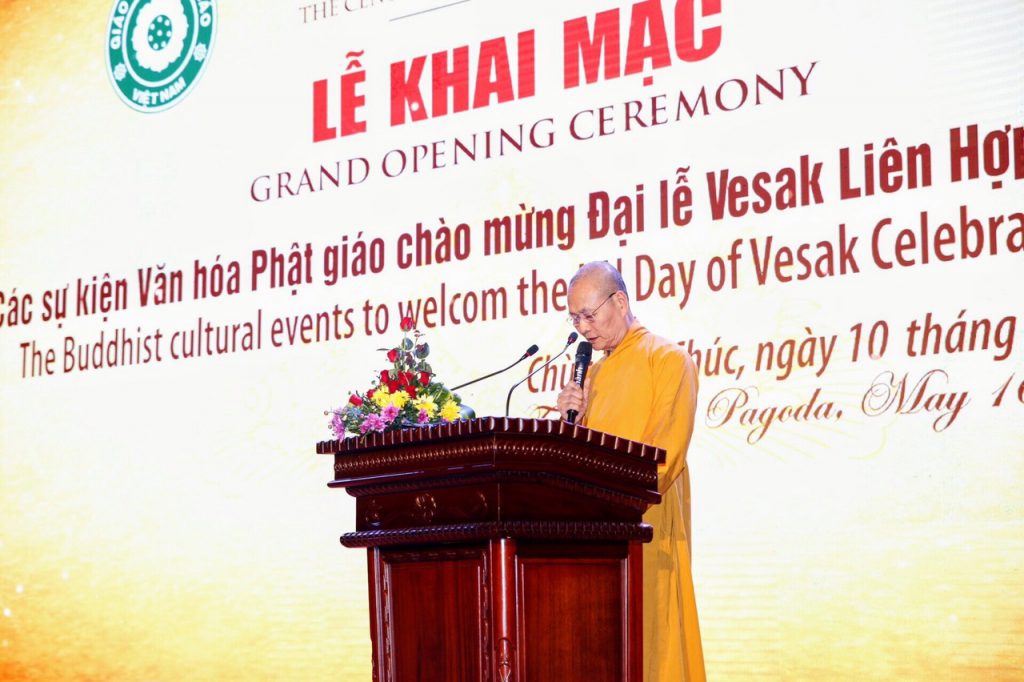 TT. Thích Thọ Lạc - Ủy viên Thư ký HĐTS, Quyền Trưởng Ban Văn hóa TƯ GHPGVN, Phó Tổng Thư ký Đại lễ Vesak LHQ phát biểu khai mạc