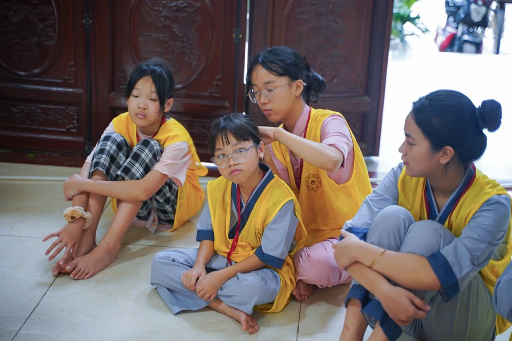 Buổi chiều, không khí tại chùa thêm rộn ràng với các hoạt động nhóm sinh động. Thông qua hình thức chia nhóm theo các “gia đình”, các em được cùng nhau vẽ tranh, ca hát, chơi các trò chơi dân gian, và lắng nghe những câu chuyện nhiệm màu về cuộc đời Đức Phật Thích Ca Mâu Ni. Mỗi câu chuyện, mỗi bài học từ cuộc đời của Ngài là một ngọn đèn trí tuệ thắp sáng tâm hồn non trẻ, gieo vào lòng các em hạt giống của từ bi, nhẫn nhục và trí tuệ.