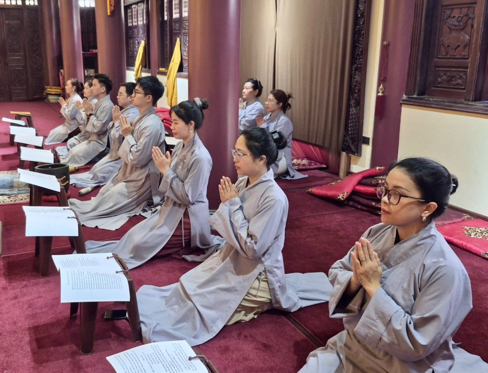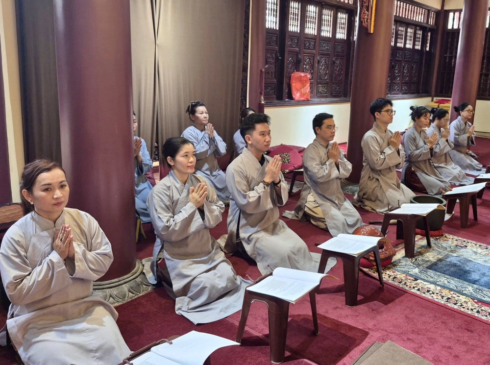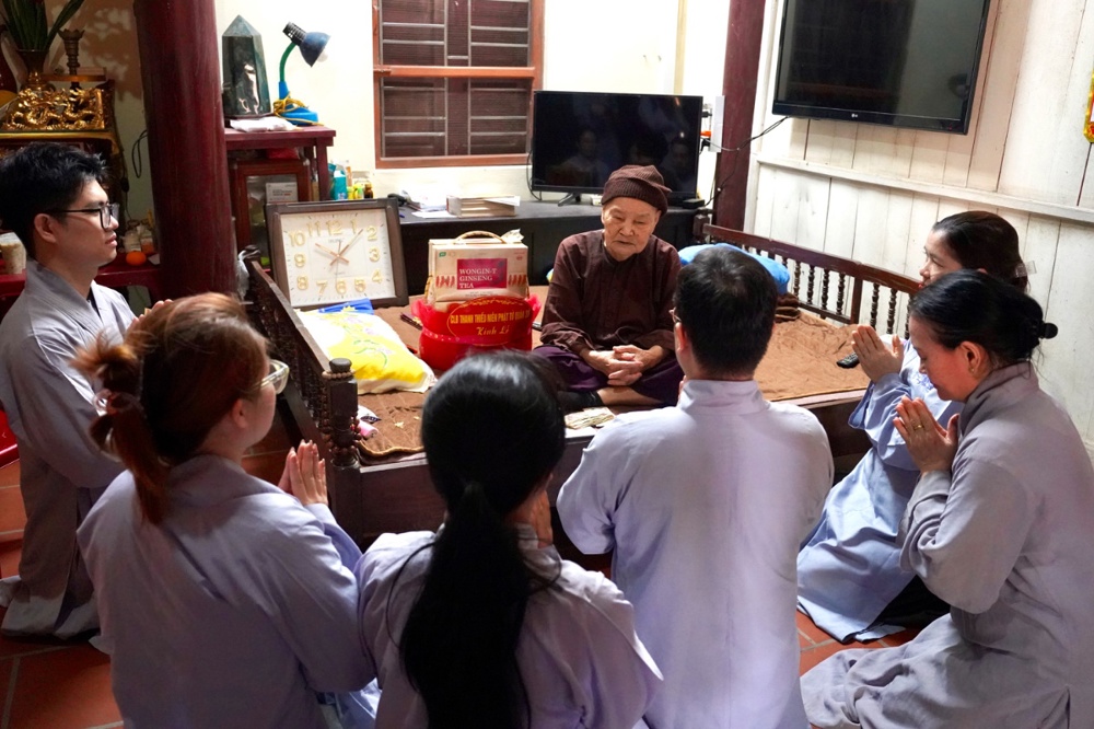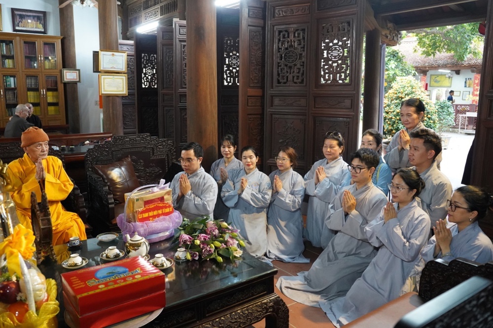 CLB thành kính dâng hương lễ Phật, tụng kinh tại chính điện Tam bảo. Tại đây, các thành viên được vấn an, diện kiến Trưởng lão Hòa thượng Thích Thanh Dũng – Phó Pháp chủ kiêm Chánh Thư ký Hội đồng Chứng minh GHPGVN.