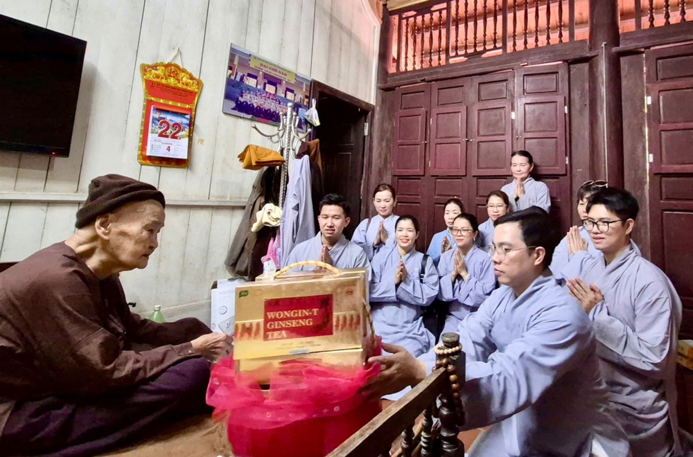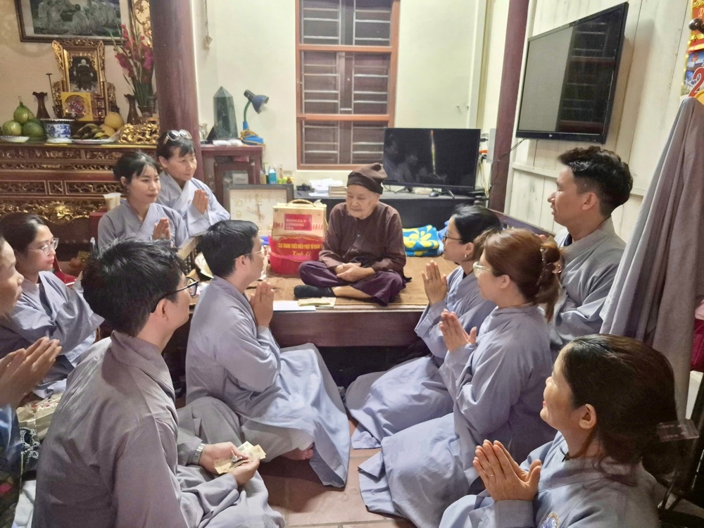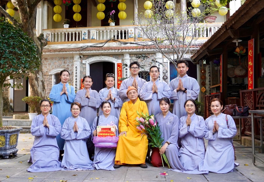 Tại chùa Tiêu, Ban Chủ nhiệm CLB thành kính dâng hương lễ Phật, tụng kinh, cầu nguyện quốc thái dân an. Đặc biệt, đoàn có duyên lành được diện kiến Ni trưởng Thích Đàm Chính (98 tuổi) – vị trụ trì đức độ.