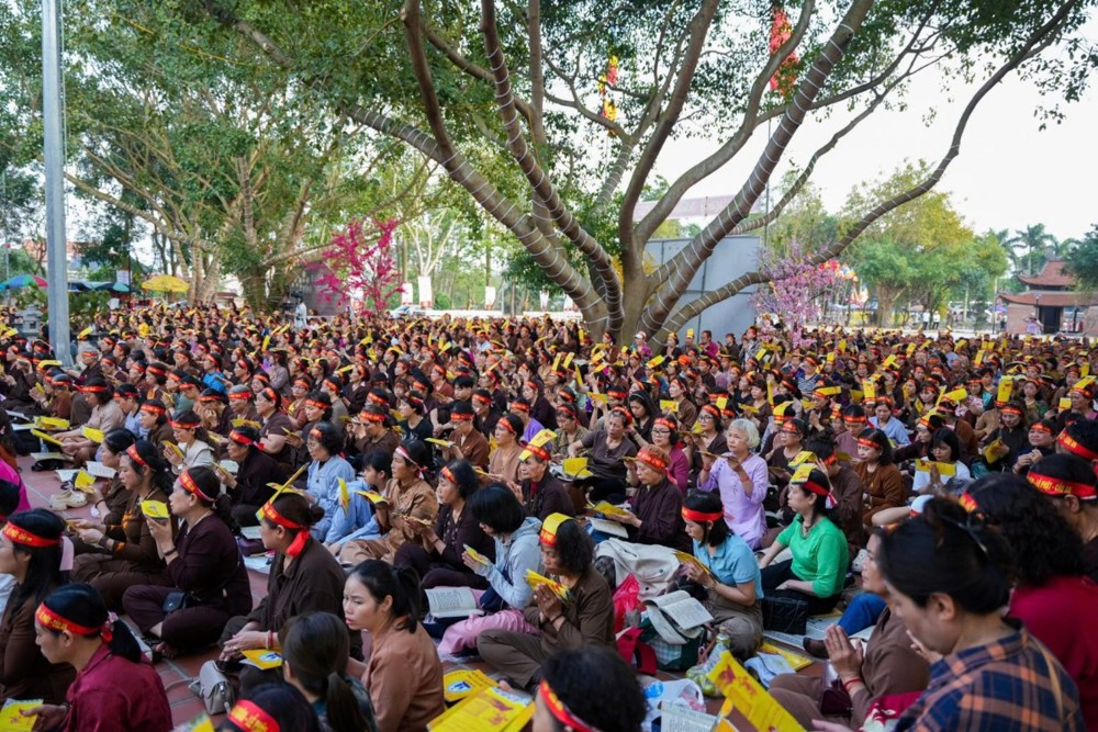 Tại đây, đoàn đã tổ chức khóa lễ trì chú Đại Bi, Thập Chú, niệm danh hiệu chư Phật, danh hiệu Bồ Tát Quán Thế Âm. Mặc dù hàng ngàn người tham dự nhưng tất cả đều trang nghiêm, thành kính, nhất tâm trì chú, niệm Phật, cầu nguyện chư Phật, chư Bồ Tát, Thiên Long Bát Bộ, Hộ pháp thiện thần gia hộ cho thế giới không còn chiến tranh, đất nước Việt Nam cường thịnh, nhân dân ấm no hạnh phúc, thiên tai dịch bệnh được tiêu trừ.