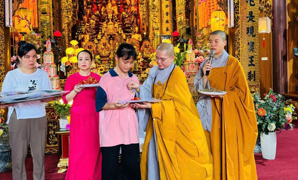 Trong không khí trang nghiêm, chư Tôn đức Ni đã cử hành nghi lễ dâng hương bạch Phật, tụng chú Đại Bi, dâng đăng và cầu nguyện cho các sĩ tử bước vào mùa thi được bình an, thành tựu. Các em học sinh cũng được hướng dẫn tụng Kinh Phúc Đức, Kinh Từ Bi nhằm tạo thêm năng lượng tích cực, được Tam bảo che chở hộ trì trong giai đoạn quan trọng này.