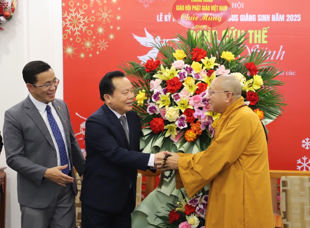 Thay mặt Tăng Ni, Phật tử cả nước Hòa thượng Thích Gia Quang đã gửi những lời chúc tốt đẹp thăm hỏi và chúc Mục sư Bùi Văn Sản, Hội trưởng Hội thánh Tin lành VN (miền Bắc), các mục sư, bà con tín hữu mùa Giáng sinh an lành, mạnh khỏe và làm được nhiều việc tốt đạo đẹp đời.