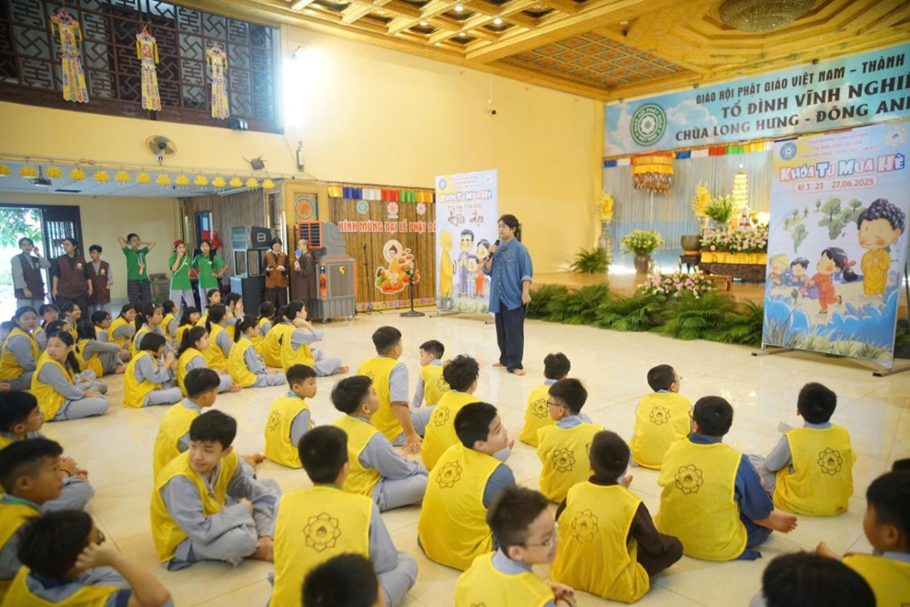PSO - Dưới tiết trời dịu nhẹ ngày 23/6/2025, hơn 300 khoá sinh thủ đô Hà Nội nhộn nhịp trở về chùa Long Hưng - huyện Đông Anh, tham gia khoá tu mùa hè “Con về Bên Phật” lần 3 với chủ đề “Hiếu Đạo”.