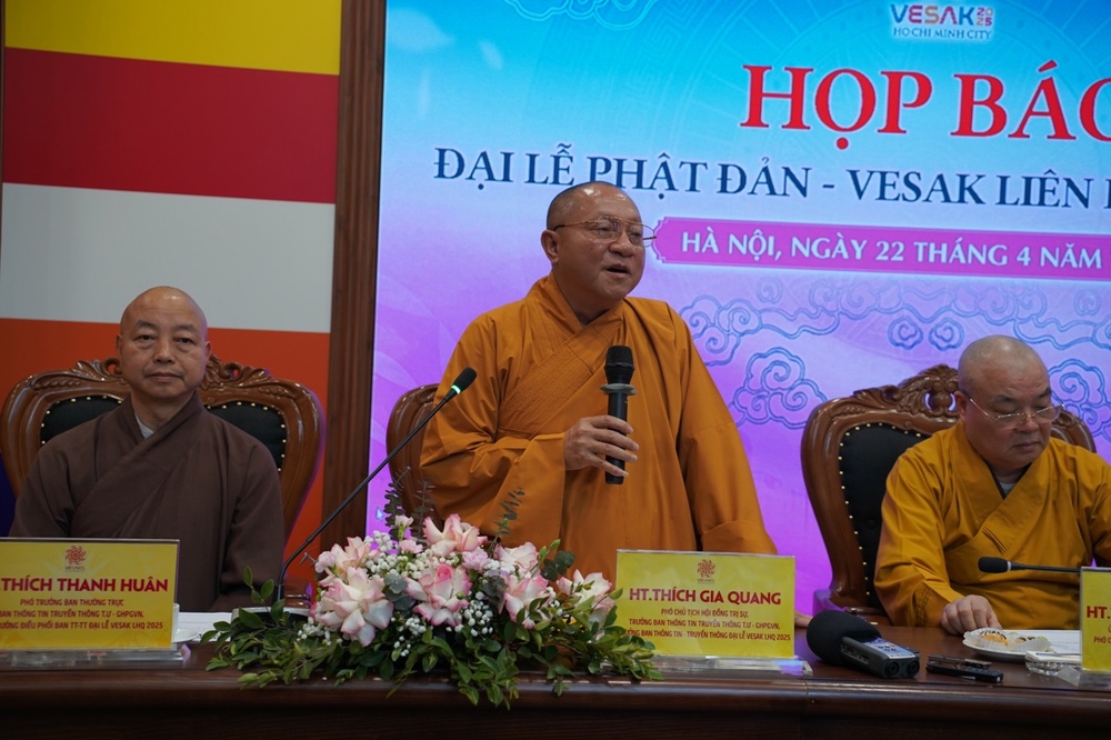 Phát biểu tại họp báo, Hòa thượng Thích Gia Quang, Trưởng Tiểu ban Thông tin – Truyền thông Vesak 2025, cho biết: Đại lễ Vesak Liên Hợp Quốc 2025 do GHPGVN đăng cai tổ chức từ ngày 6 đến 8/5/2025 tại Học viện Phật giáo Việt Nam TP.HCM (Cơ sở II, xã Lê Minh Xuân, huyện Bình Chánh). Đây là sự kiện đối ngoại văn hóa quốc tế có ý nghĩa sâu sắc, không chỉ với Phật giáo Việt Nam mà còn với đất nước nói chung, nhân dịp kỷ niệm 50 năm Ngày Giải phóng miền Nam, thống nhất đất nước (30/4/1975 – 30/4/2025) và 80 năm Quốc khánh nước CHXHCN Việt Nam (2/9/1945 – 2/9/2025).