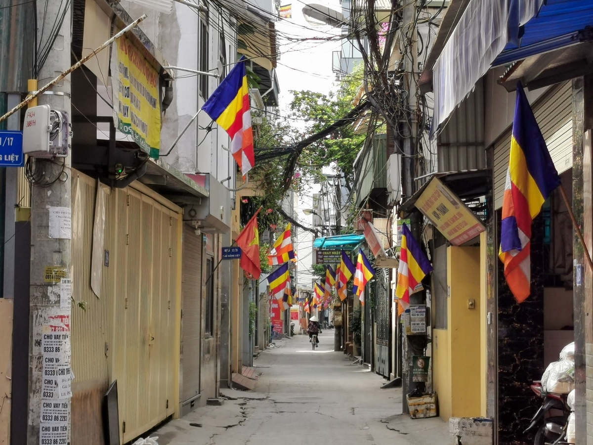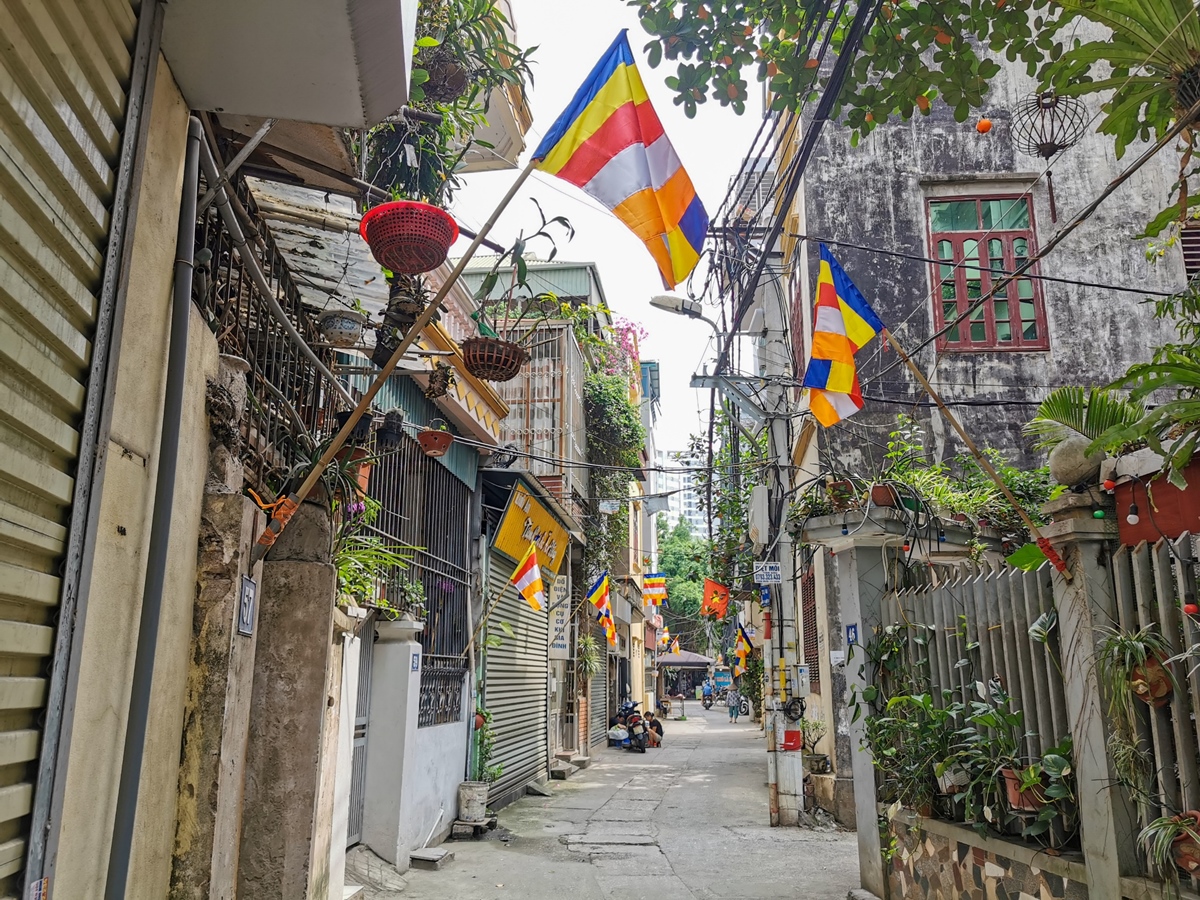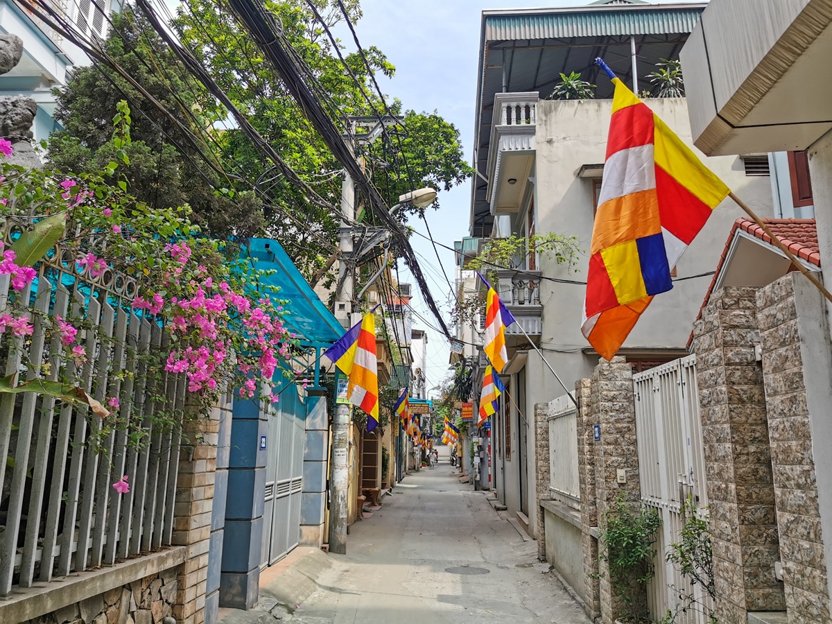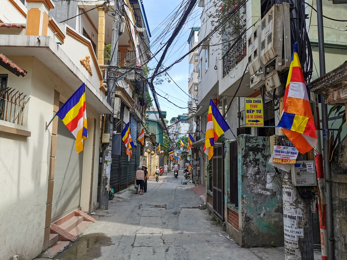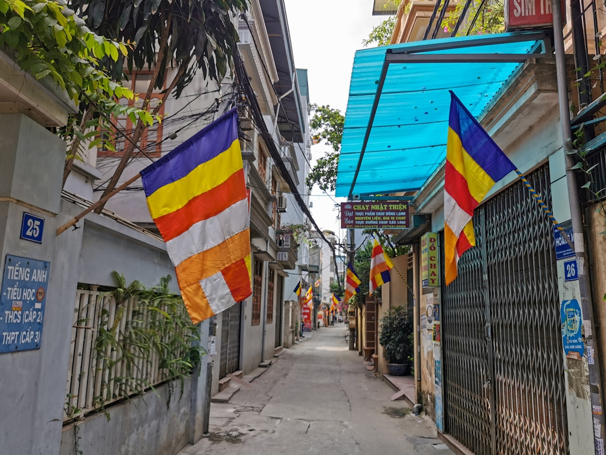 Những ngày này, tại chùa Bằng - Linh Tiên tự (số 63 phố Bằng Liệt, phường Hoàng Liệt, quận Hoàng Mai, Hà Nội), các bạn sinh viên tình nguyện cùng Phật tử bản tự đã vân tập về chùa để cùng quý Thầy trang trí xe hoa, cổng chào, cờ phướn... Khắp các nẻo đường vào chùa, những lá cờ ngũ sắc phấp phới tung bay trải dài trong nắng đầu hè dịu ngọt. Đặc biệt hơn, đã từ lâu, những người dân trong khu dân cư Bằng Liệt đã coi Phật đản là một lễ hội của toàn dân. Vì vậy, nhà nào cũng treo cờ Phật đản trước cửa để tỏ lòng thành kính hướng về Đức Từ Phụ.
