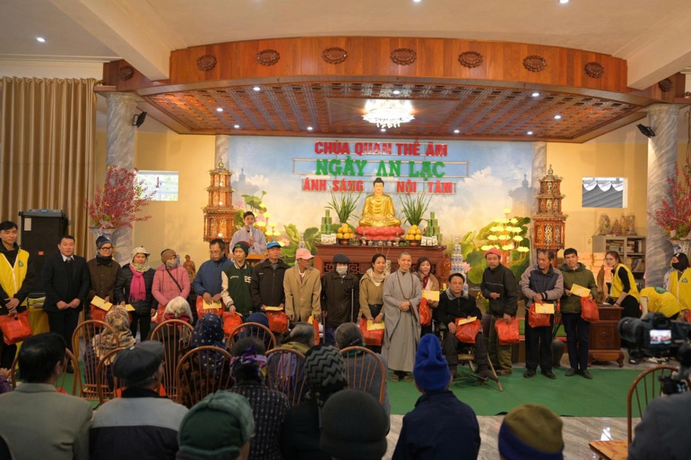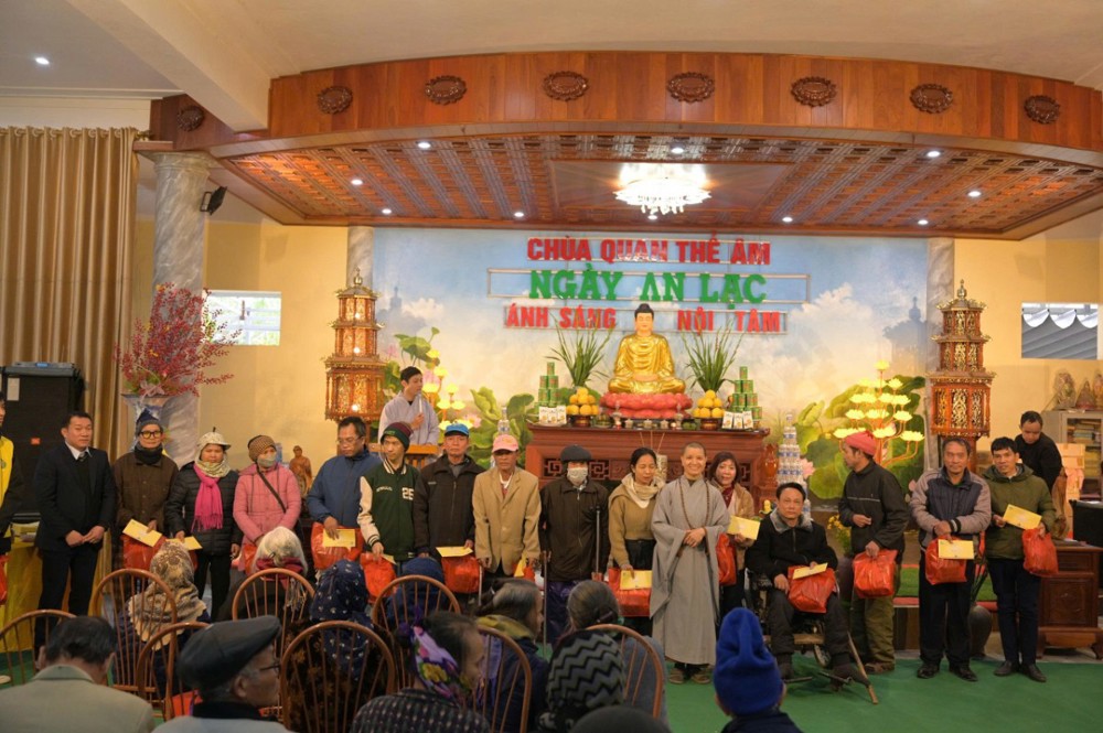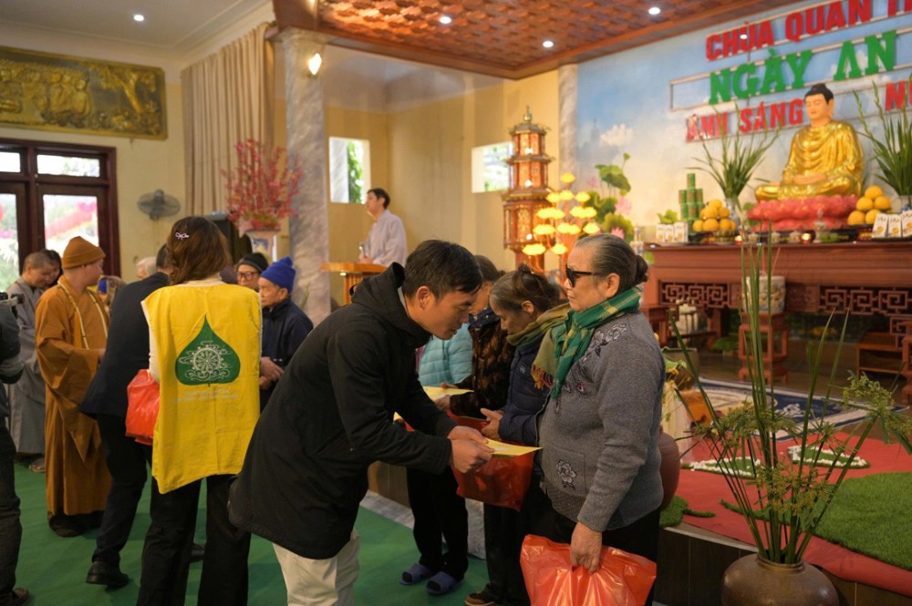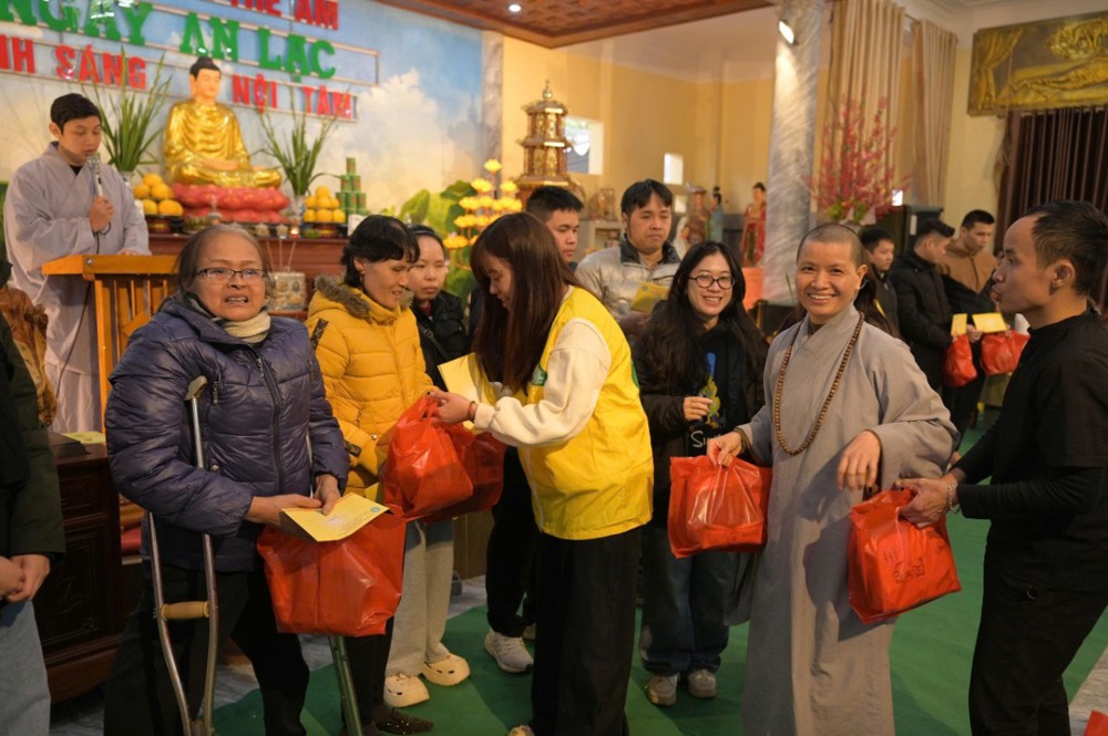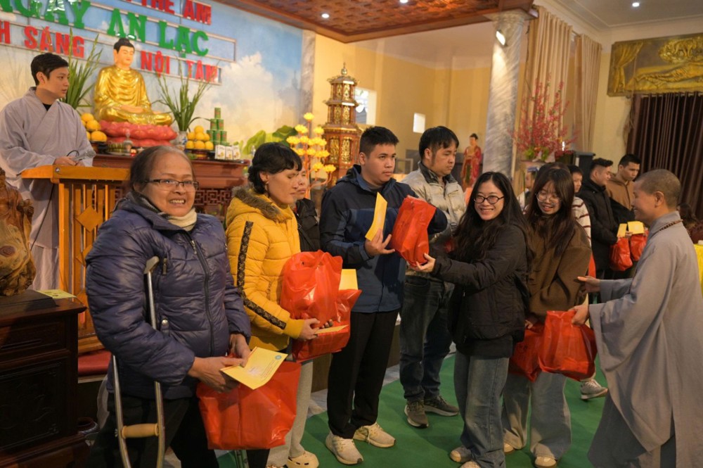 Trong khuôn khổ chương trình, Ban Tổ chức đã trao 200 phần quà Tết, mỗi phần gồm 300.000 đồng tiền mặt cùng phần quà nhu yếu phẩm trị giá 100.000 đồng, gồm bánh chưng, bánh kẹo, khăn mặt, bàn chải… Đồng thời, nhà chùa thiết đãi bà con bữa cơm trưa chay trong không khí thân tình, đầm ấm.