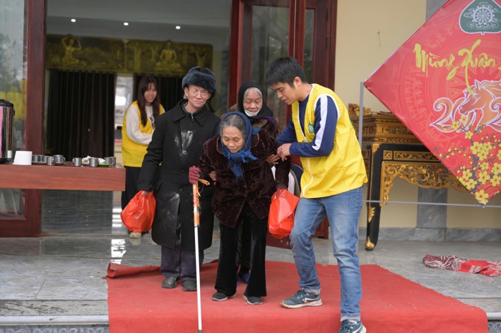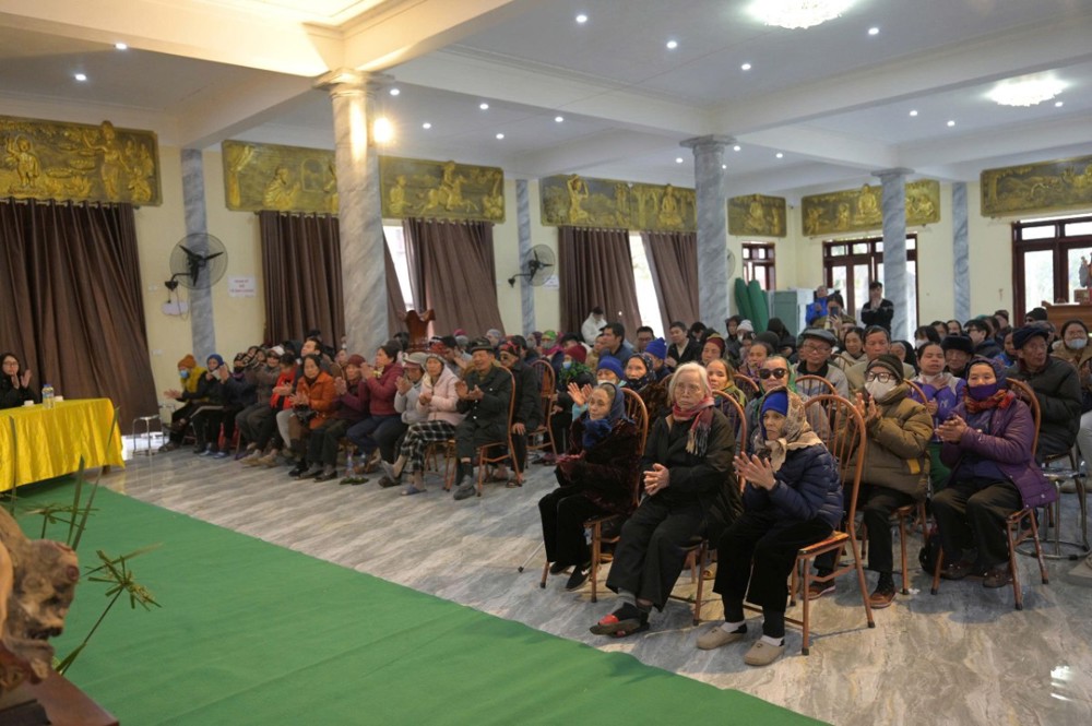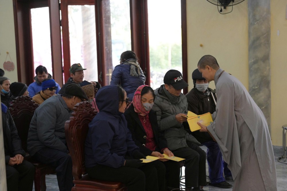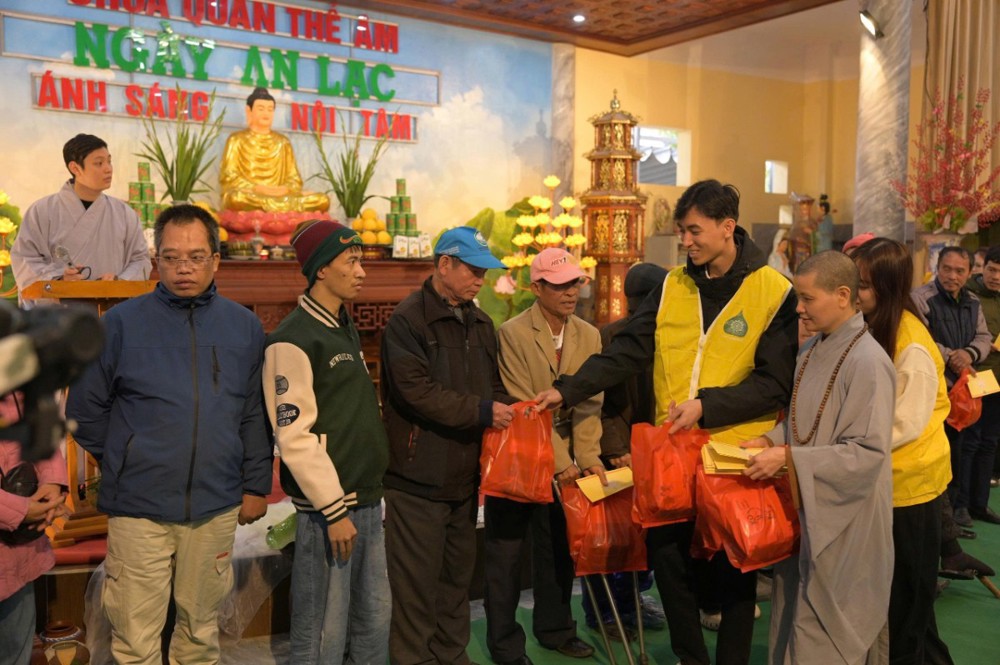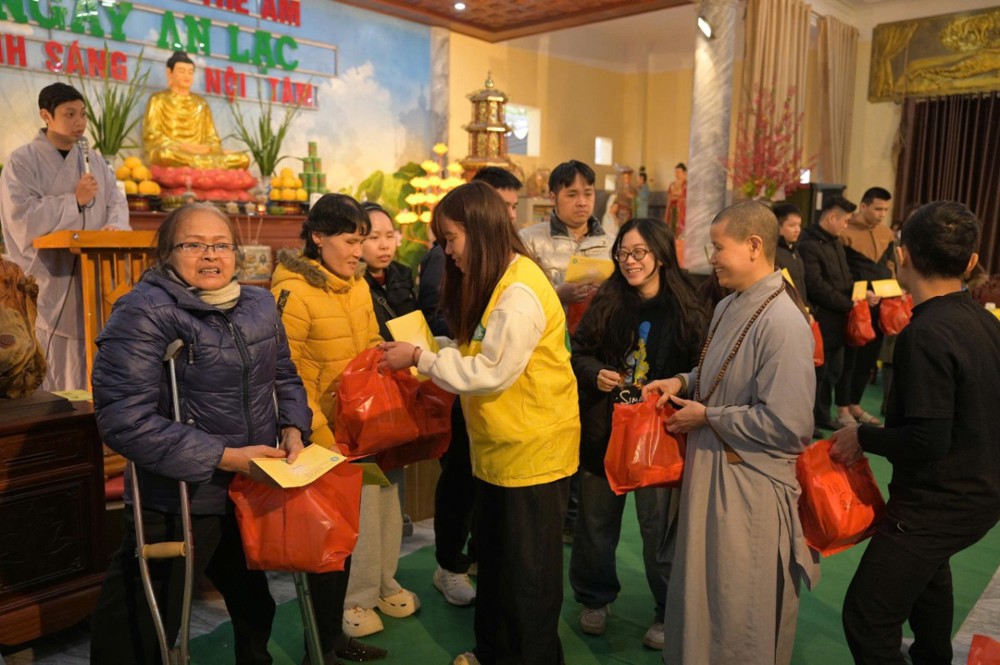 Trong khuôn khổ chương trình, Ban Tổ chức đã trao 200 phần quà Tết, mỗi phần gồm 300.000 đồng tiền mặt cùng phần quà nhu yếu phẩm trị giá 100.000 đồng, gồm bánh chưng, bánh kẹo, khăn mặt, bàn chải… Đồng thời, nhà chùa thiết đãi bà con bữa cơm trưa chay trong không khí thân tình, đầm ấm.