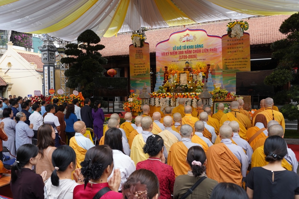 PSO - Sáng ngày 01/4/2026 (nhằm ngày 14/2 năm Bính Ngọ), chùa Liên Phái, phường Bạch Mai, TP. Hà Nội long trọng tổ chức lễ giỗ Tổ khai sáng và kỷ niệm 300 năm chùa Liên Phái (1726–2026).