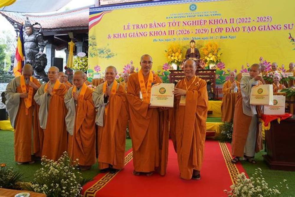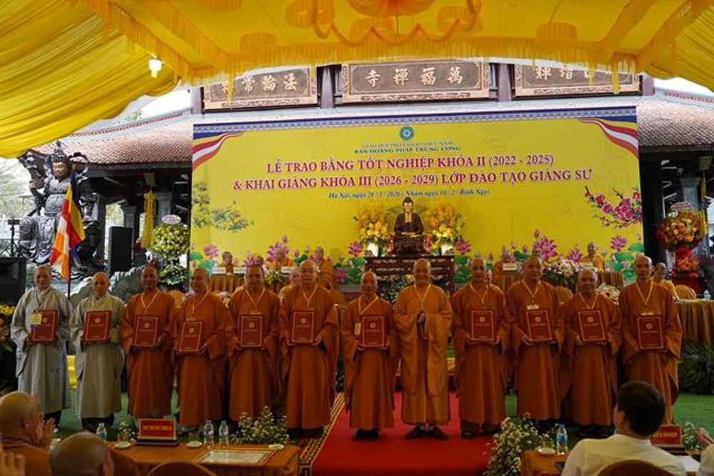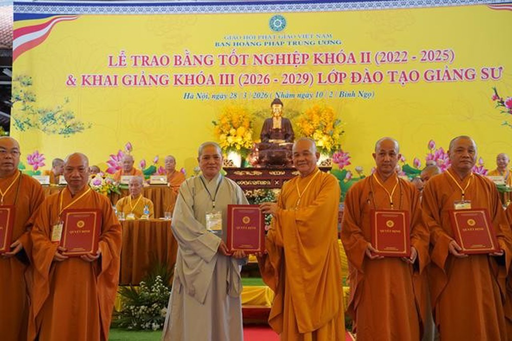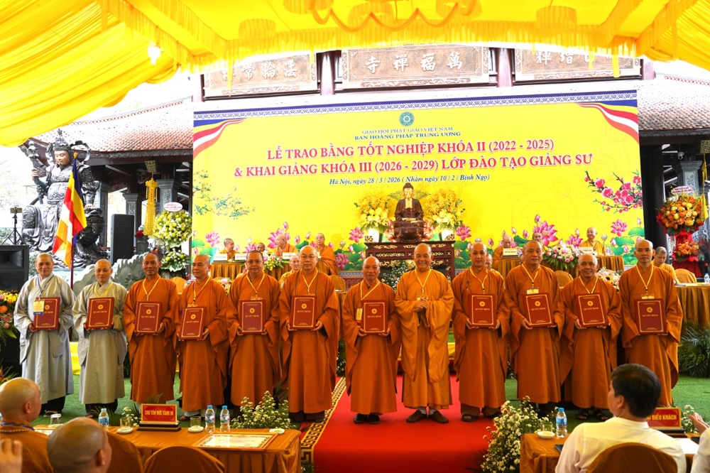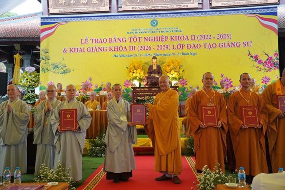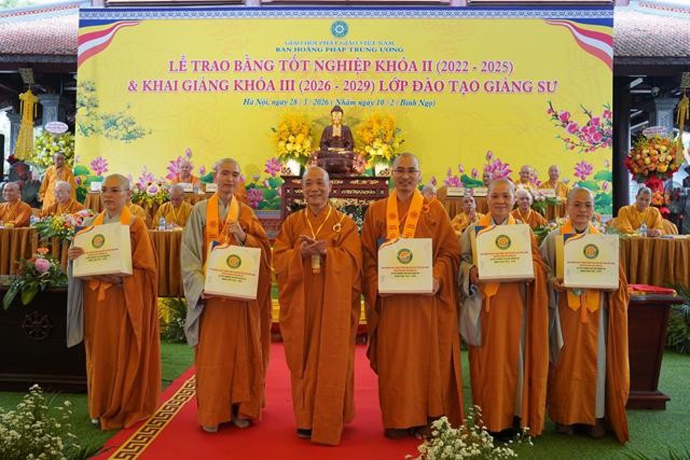 PSO: Ngày 28 tháng 3 năm 2026 nhằm ngày 10 tháng 2 năm Bính Ngọ ban Hoằng Pháp Trung ương Giáo Hội Phật giáo Việt Nam long trọng tổ chức Lễ Tốt nghiệp Khóa II (2022 - 2025) và Khai giảng Khóa III (2026 - 2029) Lớp Cao cấp Giảng sư tại chùa Vạn Phúc, xã Sóc Sơn, TP Hà Nội.