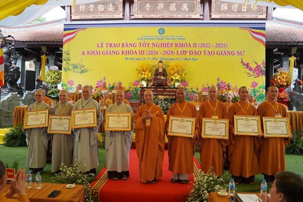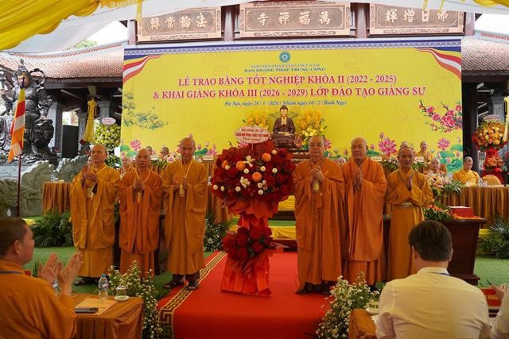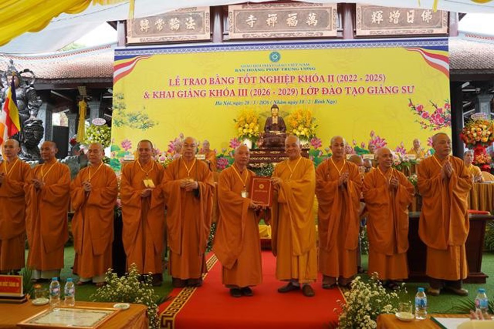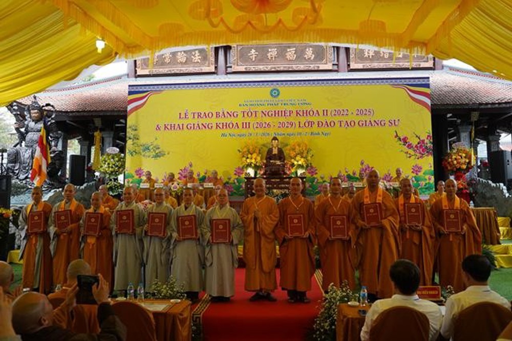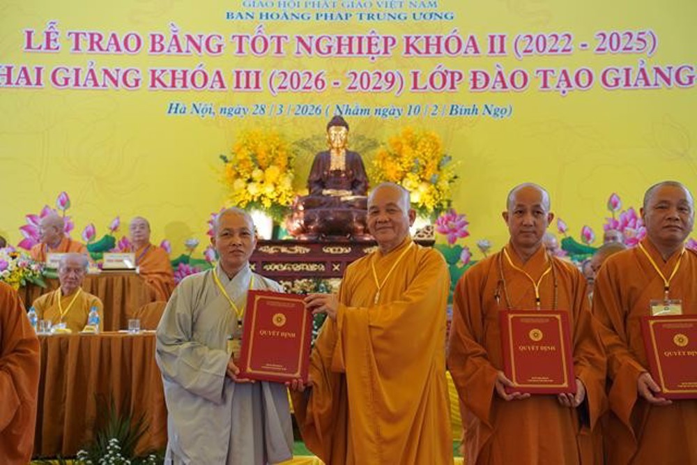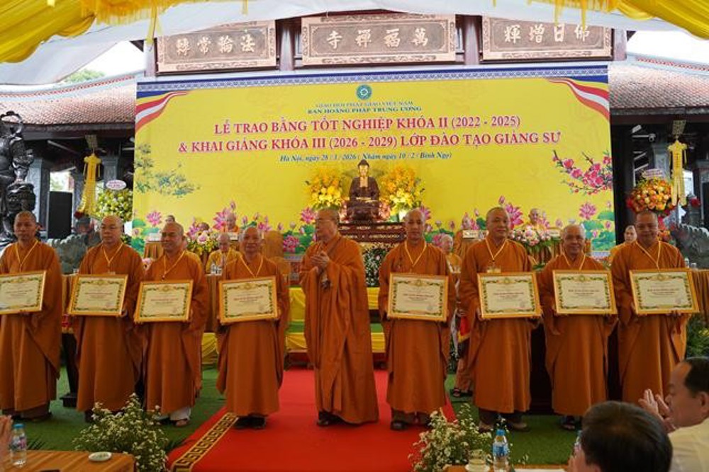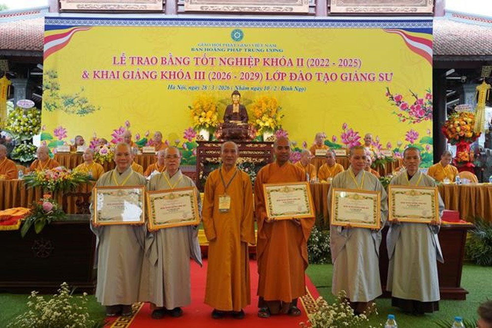 PSO: Ngày 28 tháng 3 năm 2026 nhằm ngày 10 tháng 2 năm Bính Ngọ ban Hoằng Pháp Trung ương Giáo Hội Phật giáo Việt Nam long trọng tổ chức Lễ Tốt nghiệp Khóa II (2022 - 2025) và Khai giảng Khóa III (2026 - 2029) Lớp Cao cấp Giảng sư tại chùa Vạn Phúc, xã Sóc Sơn, TP Hà Nội.