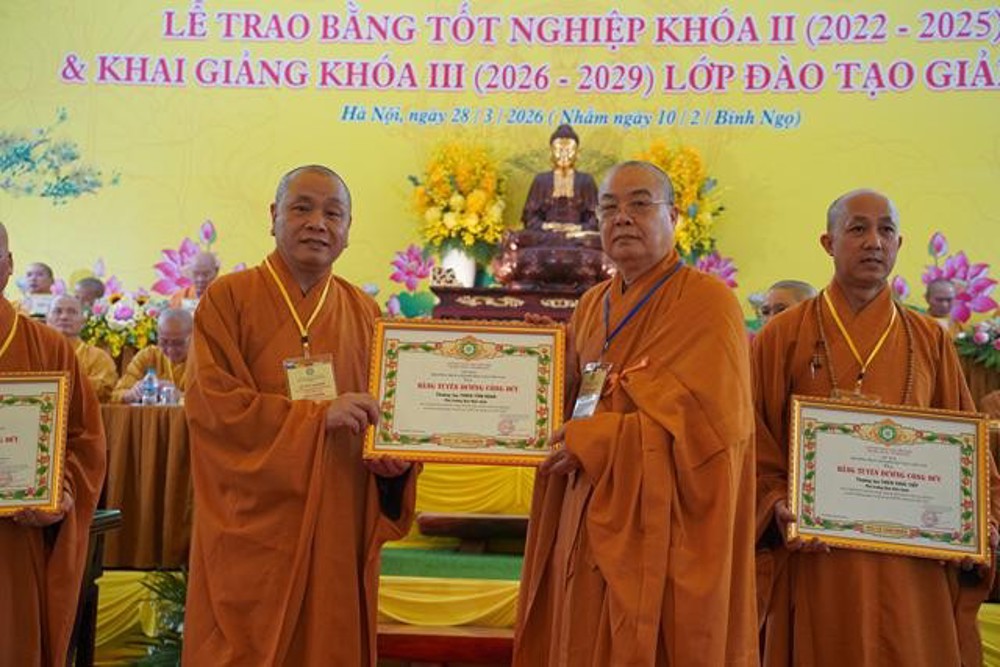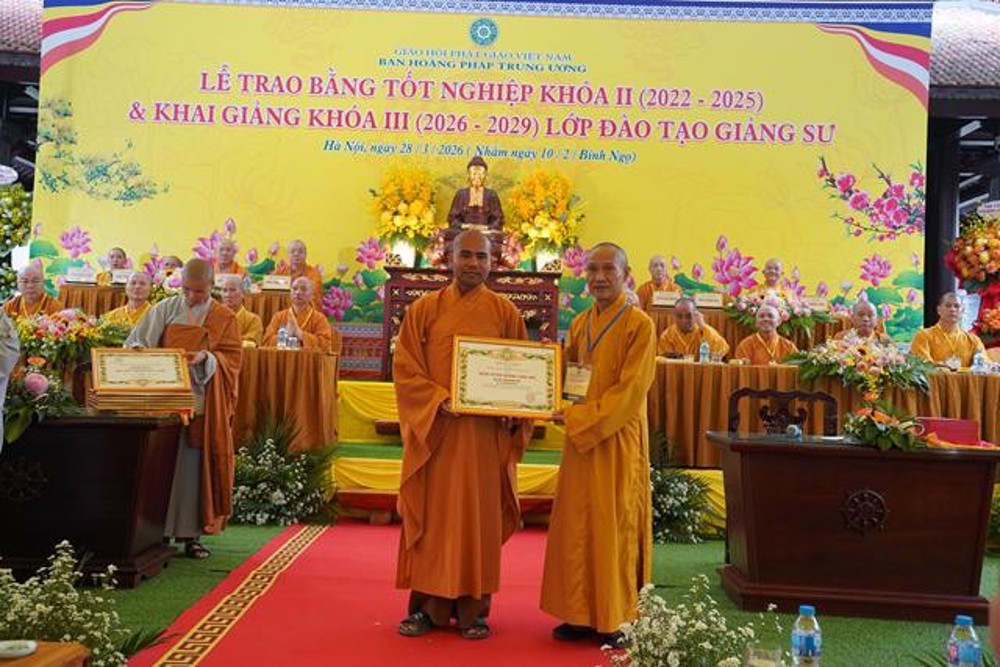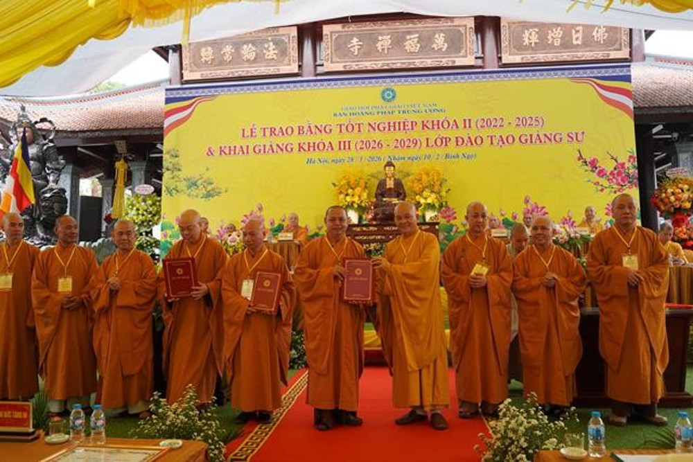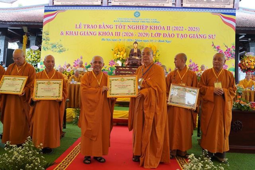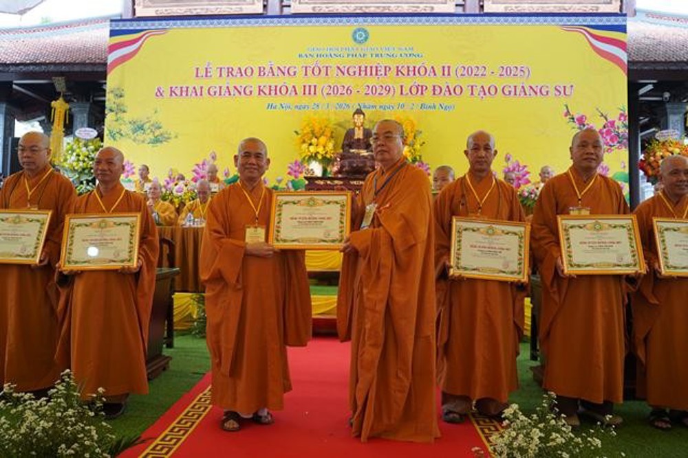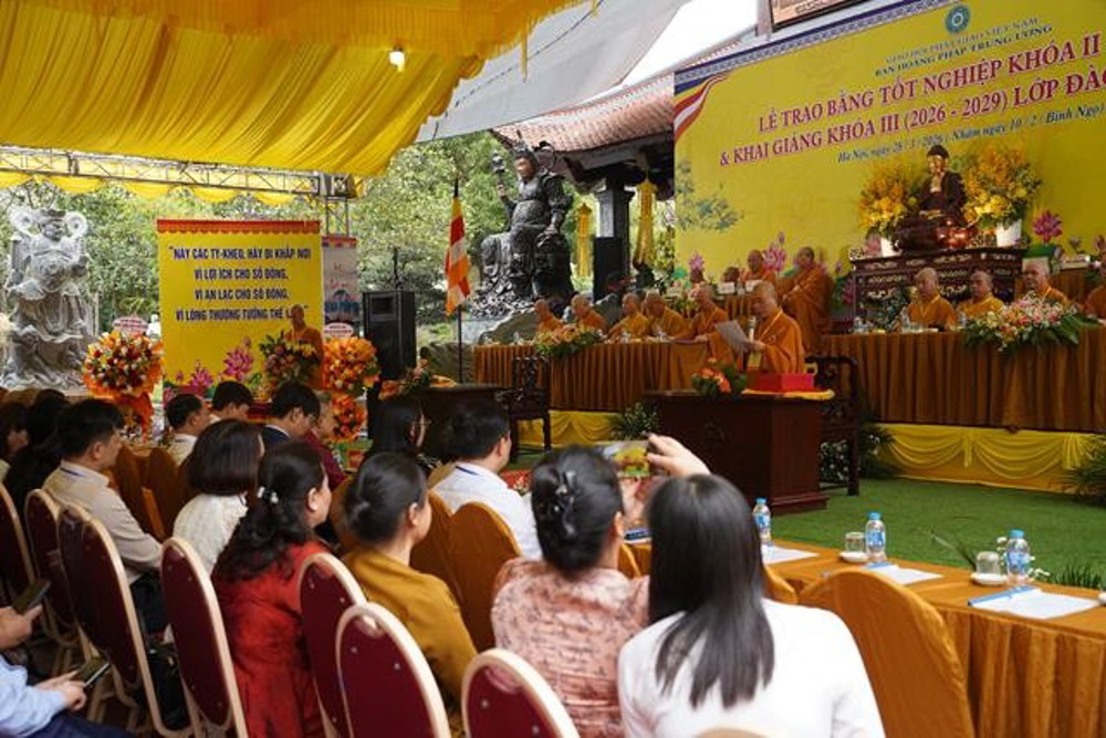 PSO: Ngày 28 tháng 3 năm 2026 nhằm ngày 10 tháng 2 năm Bính Ngọ ban Hoằng Pháp Trung ương Giáo Hội Phật giáo Việt Nam long trọng tổ chức Lễ Tốt nghiệp Khóa II (2022 - 2025) và Khai giảng Khóa III (2026 - 2029) Lớp Cao cấp Giảng sư tại chùa Vạn Phúc, xã Sóc Sơn, TP Hà Nội.