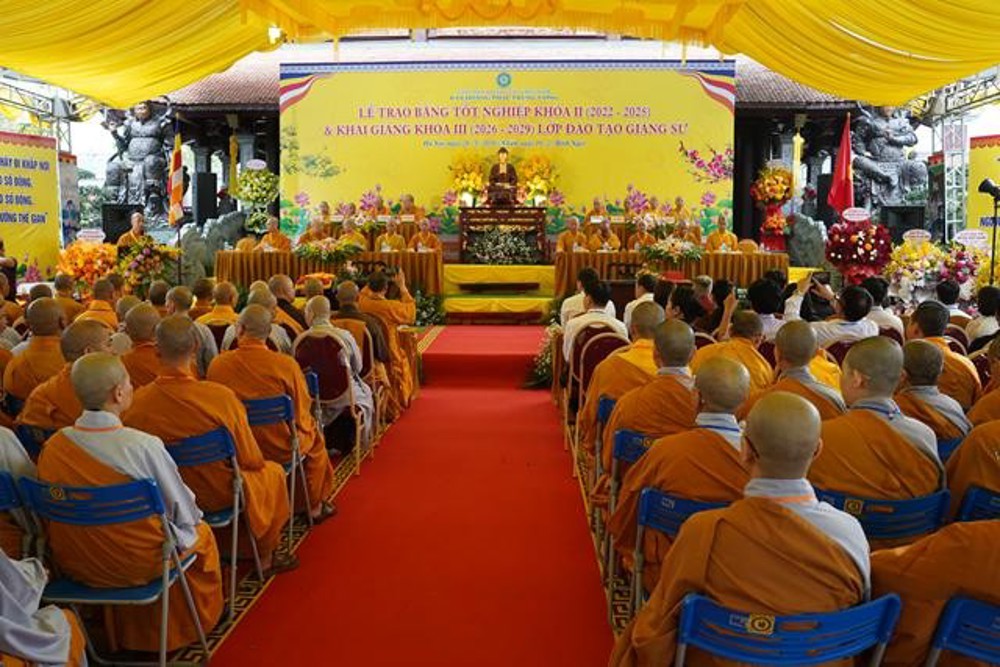 Sau ba năm tỉnh tiến tu học và rèn luyện, hôm nay quý Tăng Ni giảng sinh Khóa II đã chính thức hoàn thành chương trình đào tạo. Thành quả này là kết tinh của sự chỉ đạo sâu sát từ Chư Tôn đức lãnh đạo Trung ương Giáo hội, sự tận tâm giảng dạy của chư vị Giáo thụ sư, và trên hết là tinh thần cầu học, cầu tu bền bỉ của chính quý vị.