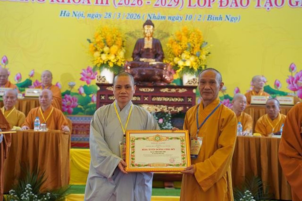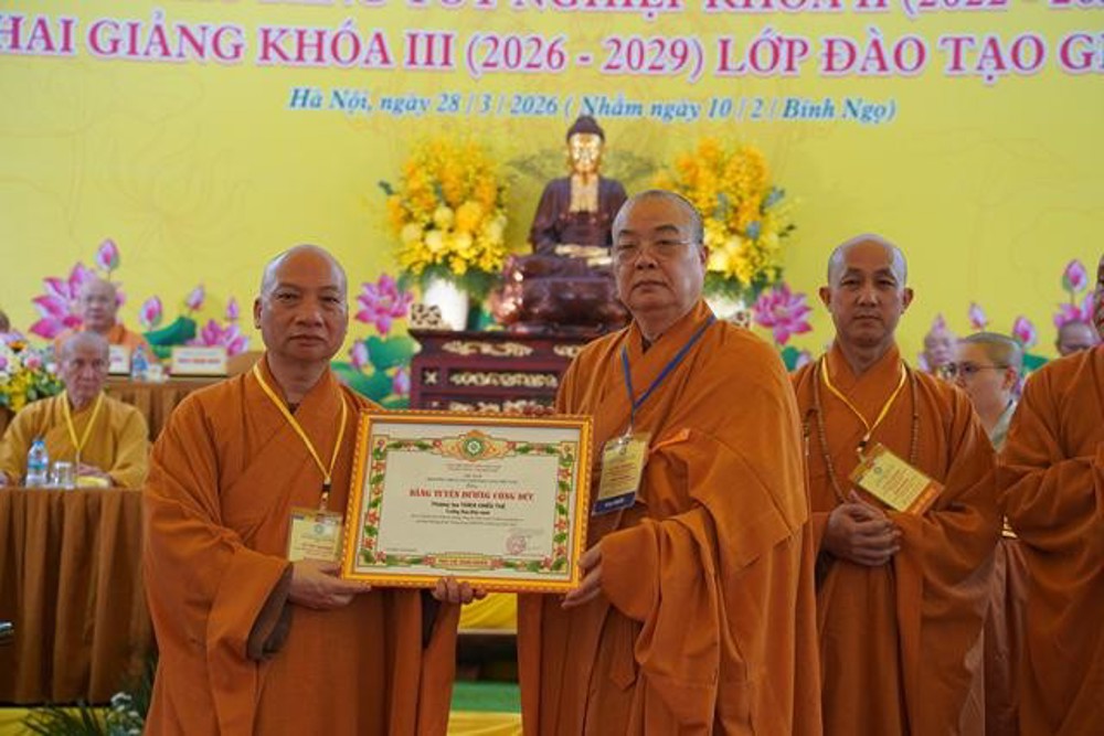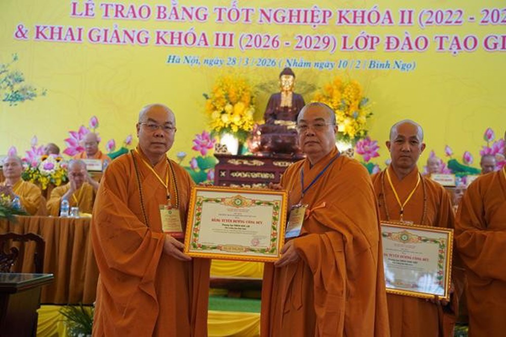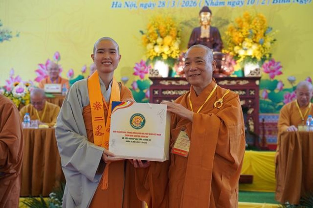 Tuy nhiên, tấm bằng tốt nghiệp hôm nay không phải là điểm dừng mà là một cánh cửa mở ra hành trình rộng lớn hơn, hành trình dấn thân vào cuộc đời để phụng sự. Người giảng sư chân chính không chỉ hoằng pháp bằng lời nói, mà còn hoằng pháp bằng chính đời sống của mình.