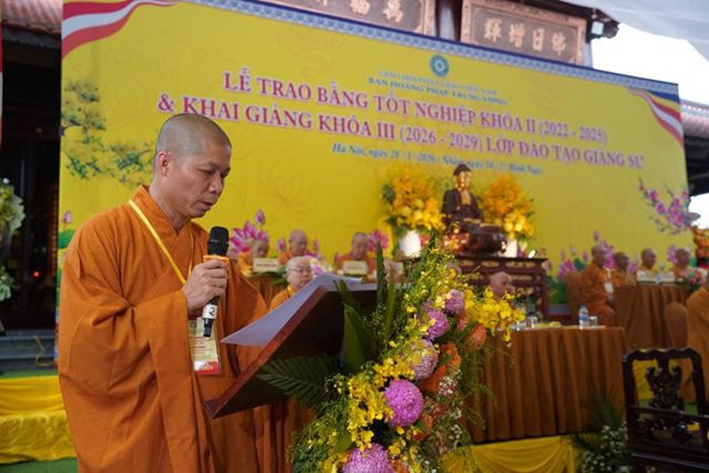 Trong lời phát biểu cảm tạ, Thượng tọa Thích Chiếu Tuệ, Ủy viên HĐTS GHPG VN, Phó Trưởng Ban thường trực Ban Hoằng pháp Trung ương, Trưởng Ban Điều hành Lớp Đào tạo Giảng sư khu vực phía Bắc nhấn mạnh: Lễ tốt nghiệp Khóa II và khai giảng Khóa III lớp Cao cấp Giảng sư là cột mốc khẳng định sứ mệnh "truyền đăng tục diệm", đưa ánh sáng Chính pháp vào đời sống.