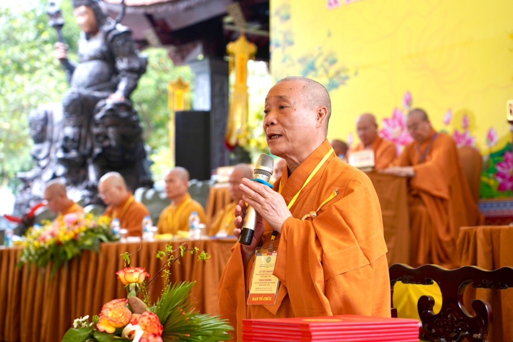 Thượng tọa Thích Thiện Hạnh thay mặt Ban điều hành trình bày báo cáo tổng kết công tác đào tạo Lớp Giảng sư Khóa II (2022-2025), đồng thời công bố phương hướng tuyển sinh và mục tiêu chiến lược cho Khóa III (2026-2029). Báo cáo khẳng định sự phát triển vững chắc của mô hình đào tạo giảng sư tại khu vực phía Bắc và trên cả nước.