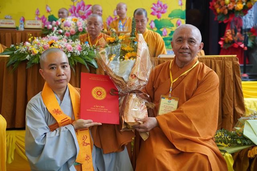 Chư Tôn đức lãnh đạo GHPGVN Tặng Bằng Tuyên dương công đức của Giáo hội Phật giáo Việt Nam cho các cá nhân đã có thành tích xuất sắc trong công tác điều hành và đào tạo giảng sư của Ban Hoằng pháp Trung ương GHPGVN, nhiệm kỳ 2022-2027