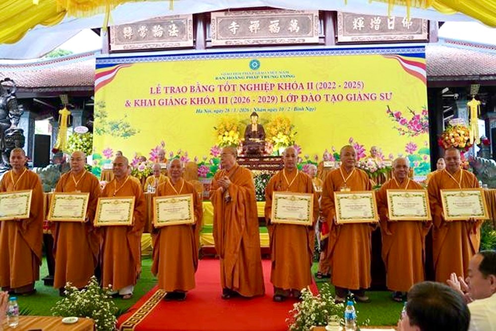 PSO - Ngày 28 tháng 3 năm 2026 (nhằm ngày 10 tháng 2 năm Bính Ngọ), Ban Hoằng pháp Trung ương Giáo hội Phật giáo Việt Nam long trọng tổ chức Lễ tốt nghiệp Khóa II (2022 - 2025) và khai giảng Khóa III (2026 - 2029) Lớp Cao cấp Giảng sư khu vực phía Bắc tại chùa Vạn Phúc, xã Sóc Sơn, TP. Hà Nội.