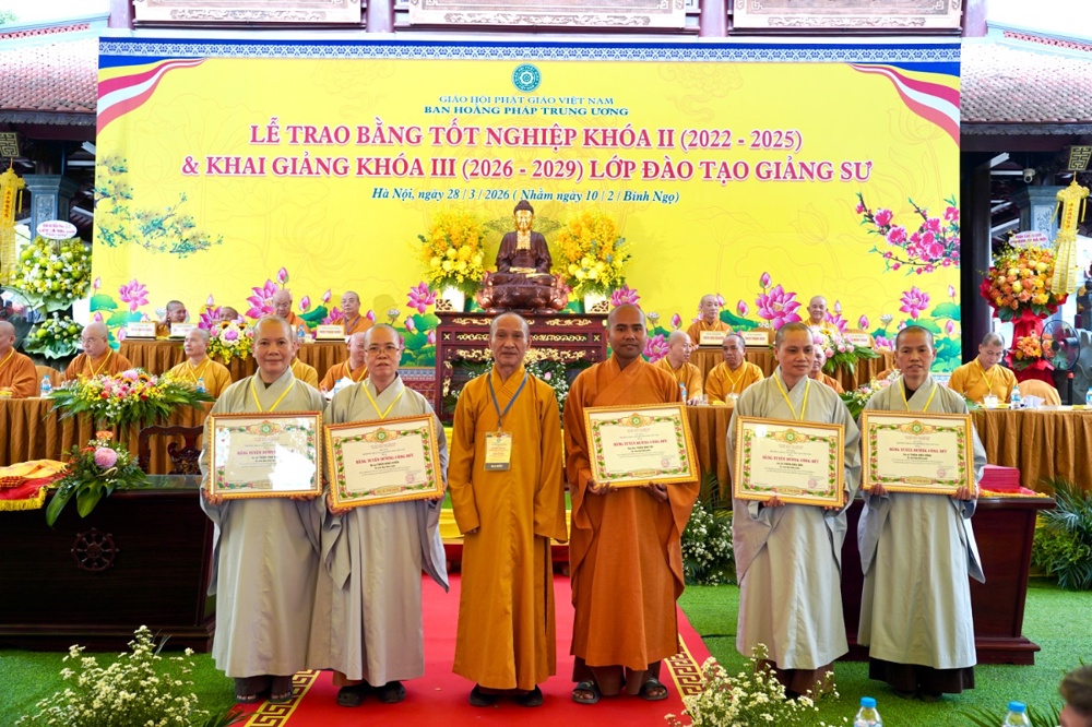 Nhân dịp này 28 thành viên đã được Ban Hoằng pháp Trung ương công bố và trao Quyết định chuẩn y nhân sự Ban Điều hành Lớp Cao cấp Giảng sư khu vực phía Bắc Khóa III.