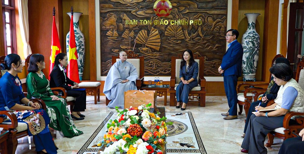 Buổi tiếp diễn ra trọng thể tại Hội trường tiếp khách Quốc tế của Ban Tôn giáo Chính phủ, với sự đón tiếp thân tình của bà Trần Thị Minh Nga, Phó Trưởng ban Ban Tôn giáo Chính phủ, cùng các thành viên Vụ Phật giáo. Trong không khí ấm áp, chân tình, hai bên đã có buổi gặp gỡ thắm đượm tình người, đồng thời trao đổi về những vấn đề quan tâm chung liên quan đến hoạt động tôn giáo, văn hóa và công tác Phật sự trong và ngoài nước.