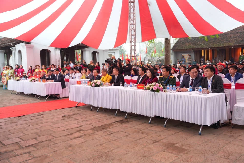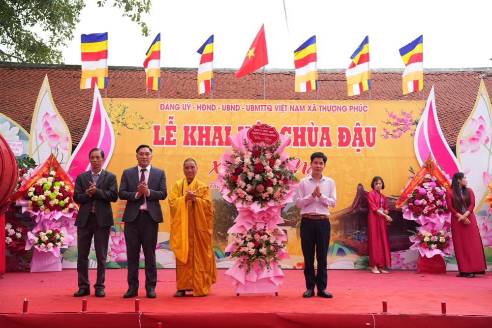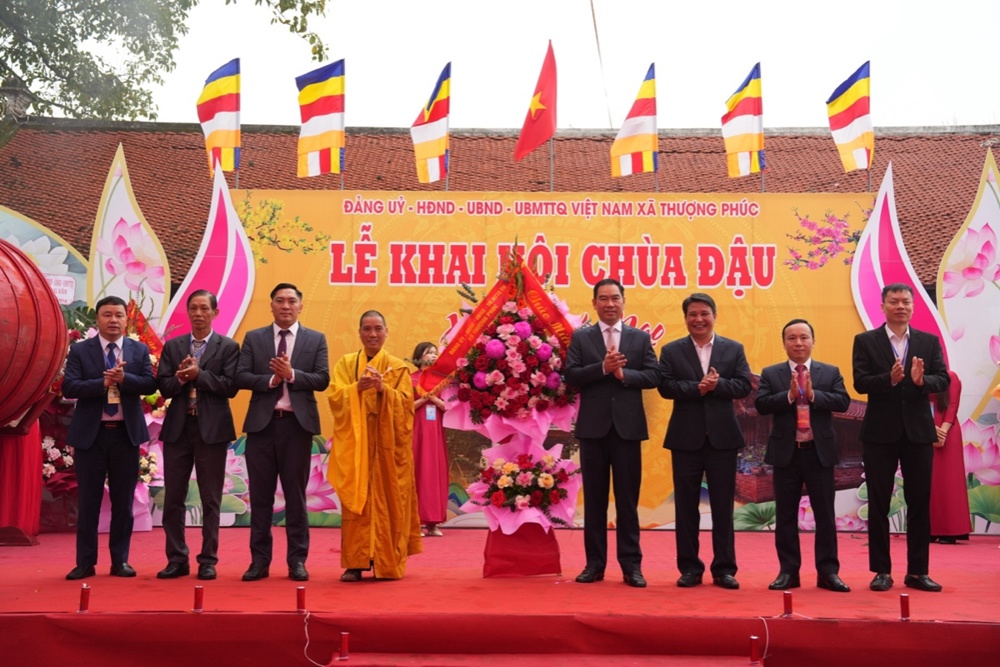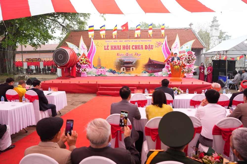 Phát biểu khai mạc, ông Tạ Hữu Thọ nhấn mạnh, Chùa Đậu là di tích linh thiêng, nơi lưu giữ hai pho tượng toàn thân xá lợi của Thiền sư Vũ Khắc Minh và Thiền sư Vũ Khắc Trường, những bậc chân tu đắc đạo đã tu hành, hóa thân tại chùa cách đây hơn 300 năm. Năm 2017, hai pho tượng được Chính phủ công nhận là Bảo vật Quốc gia, khẳng định giá trị độc đáo, hiếm có của di tích.