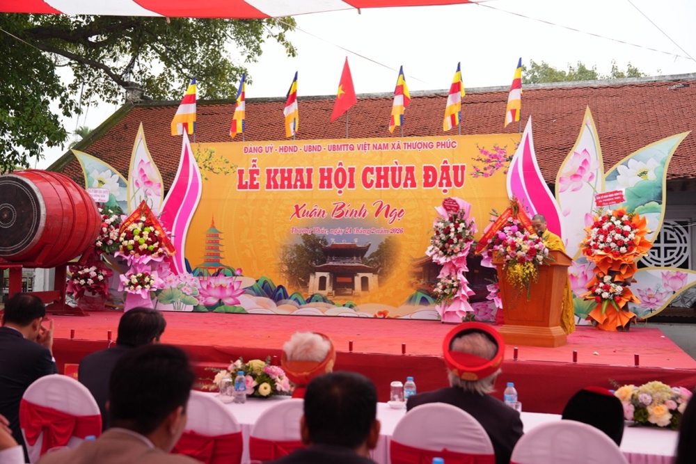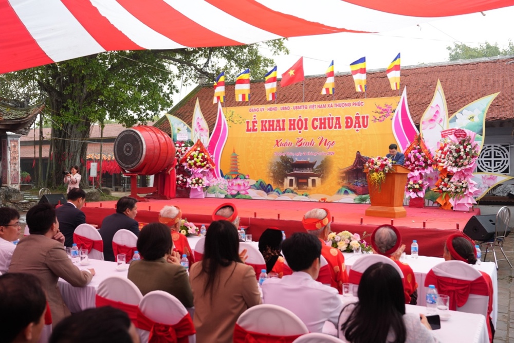 Ngày 24/2/2026 (tức mùng 8 tháng Giêng năm Bính Ngọ), tại xã Thượng Phúc, lễ hội Chùa Đậu chính thức khai mạc trong không khí trang nghiêm, rộn ràng, đáp ứng nhu cầu sinh hoạt văn hóa tâm linh của Nhân dân địa phương và du khách thập phương. Lễ hội không chỉ là hoạt động tín ngưỡng đầu xuân mà còn là dịp gìn giữ, phát huy những giá trị văn hóa truyền thống tốt đẹp của quê hương.