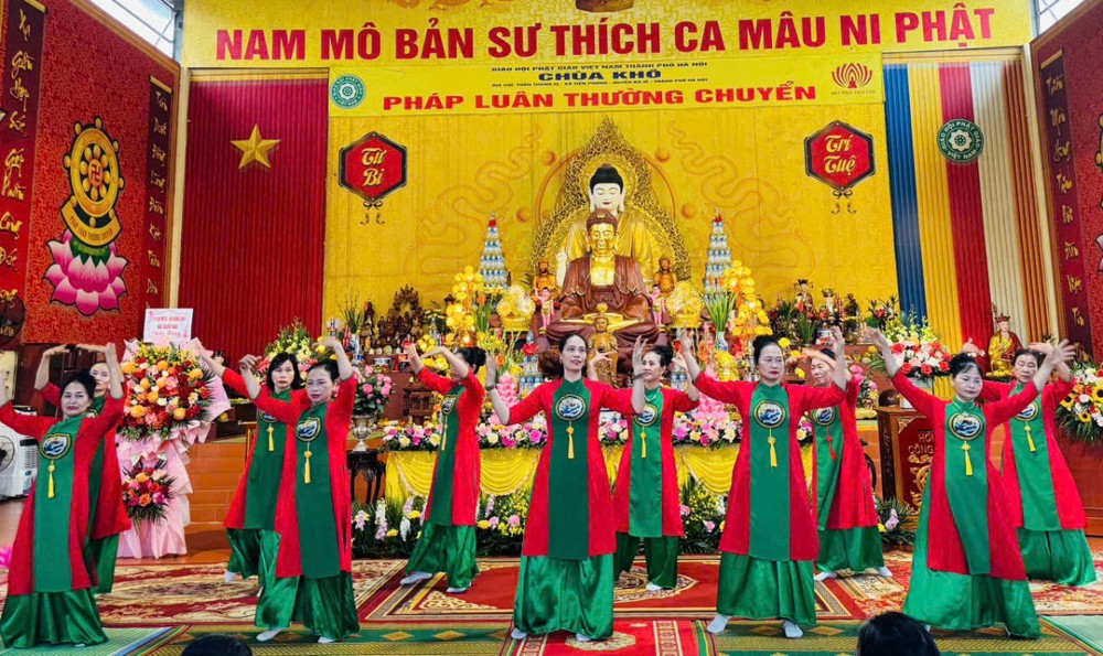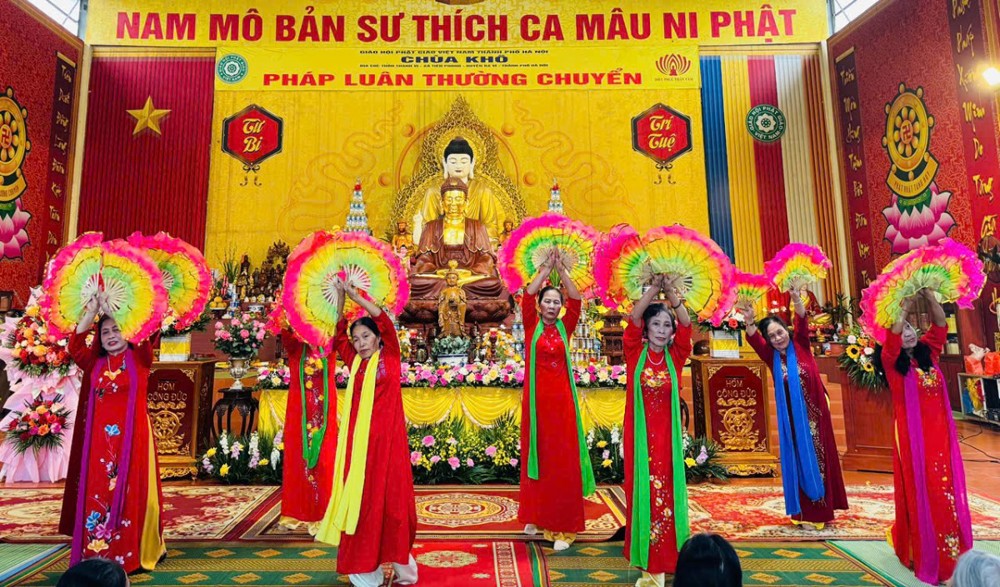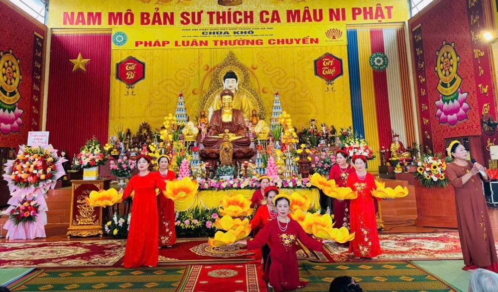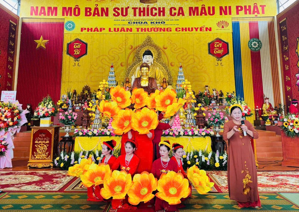 Mở đầu Đại lễ là chương trình văn nghệ cúng dường đầy trang nghiêm và ý nghĩa. Tiếp đó, Ni sư Thích Đồng Hòa phát biểu khai mạc, chia sẻ sâu sắc về ý nghĩa ngày Đức Phật Thành đạo, ý nghĩa của việc rước Tượng Phật, Bồ Tát về chùa trong bối cảnh ngôi Tam Bảo đang được trùng tu, xây dựng.