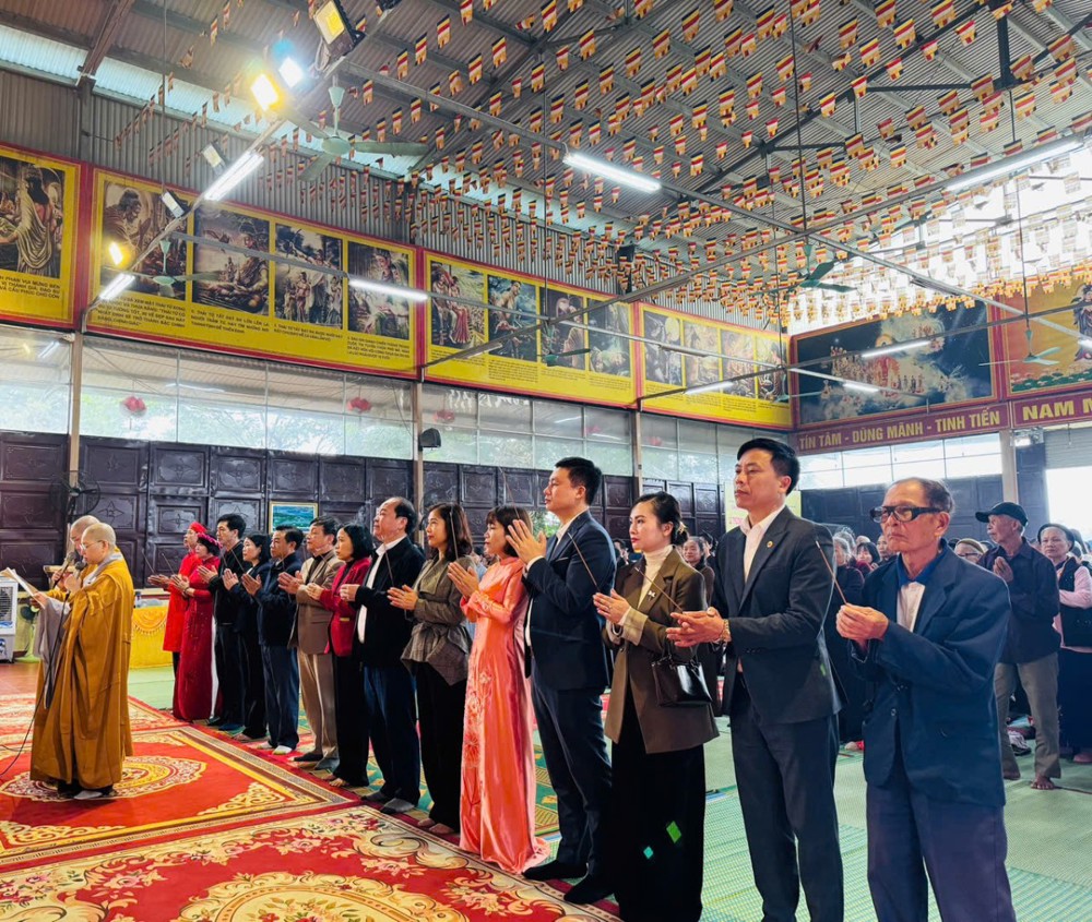 Về phía chính quyền địa phương, tham dự buổi lễ có ông Trần Quang Khuyên, Bí thư Đảng ủy, Chủ tịch HĐND xã Yên Bài; bà Nguyễn Thị Nam, Phó Bí thư Đảng ủy, Chủ tịch UBND xã Quảng Oai; bà Kiều Thị Nga, Ủy viên Ban Thường vụ Đảng ủy, Phó Chủ tịch HĐND xã Quảng Oai; ông Đặng Quyết Thắng, Ủy viên Ban Thường vụ Đảng ủy, Phó Chủ tịch UBND xã Quảng Oai; bà Đặng Thị Kim Tuyến, Đảng ủy viên, Trưởng phòng Văn hóa – Xã hội xã Quảng Oai; ông Kiều Văn Thái, Đảng ủy viên, Phó Chánh Văn phòng HĐND xã Quảng Oai; ông Nguyễn Ngọc Quang, Phó Chủ tịch UBMTTQ xã Quảng Oai; ông Đỗ Đình Trưởng, Đảng ủy viên, Phó Chủ tịch UBMTTQ xã Suối Hai; bà Nguyễn Thị Ánh Thao, Bí thư Đảng ủy thôn Vị Nhuế; ông Khuất Văn Thọ, Trưởng thôn Vị Nhuế; ông Nguyễn Văn Quế, Trưởng thôn Thanh Lũng cùng quý vị lãnh đạo các ban ngành, đoàn thể địa phương. Đại lễ còn có sự tham dự của hai giới các cụ, bà con Nhân dân, Phật tử địa phương và thập phương với gần 1.000 người.