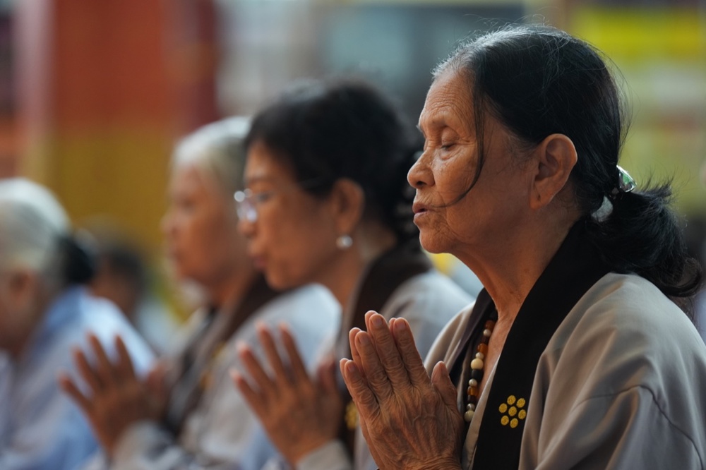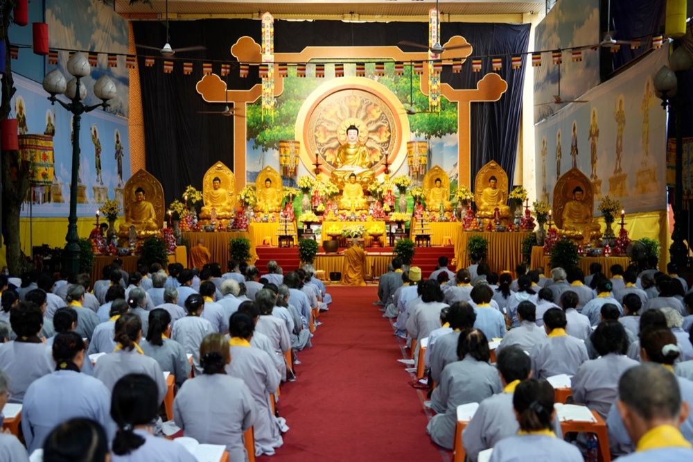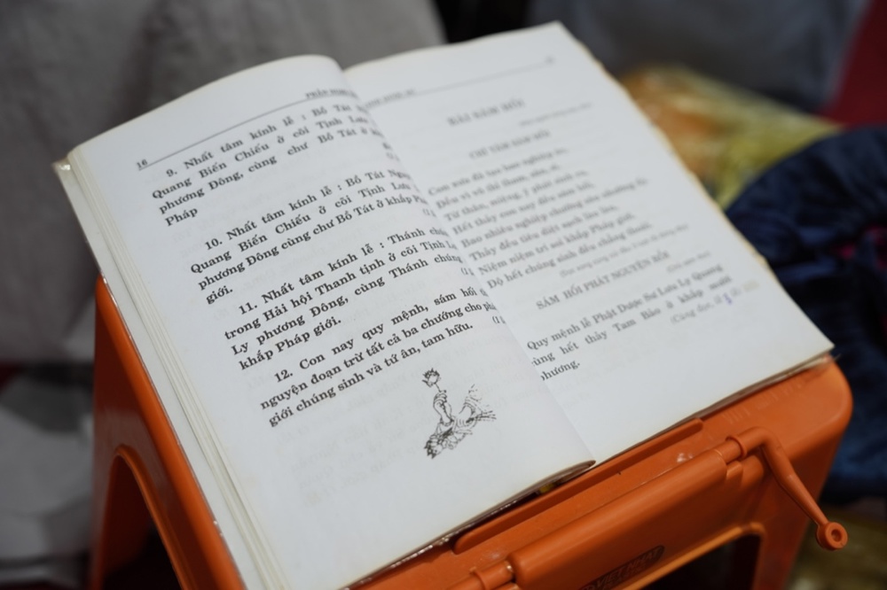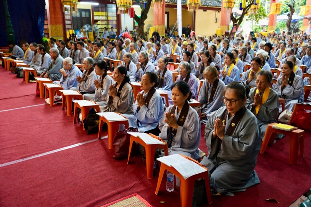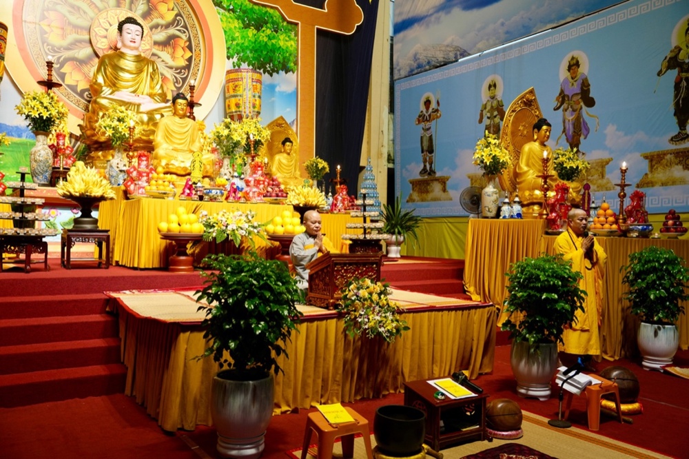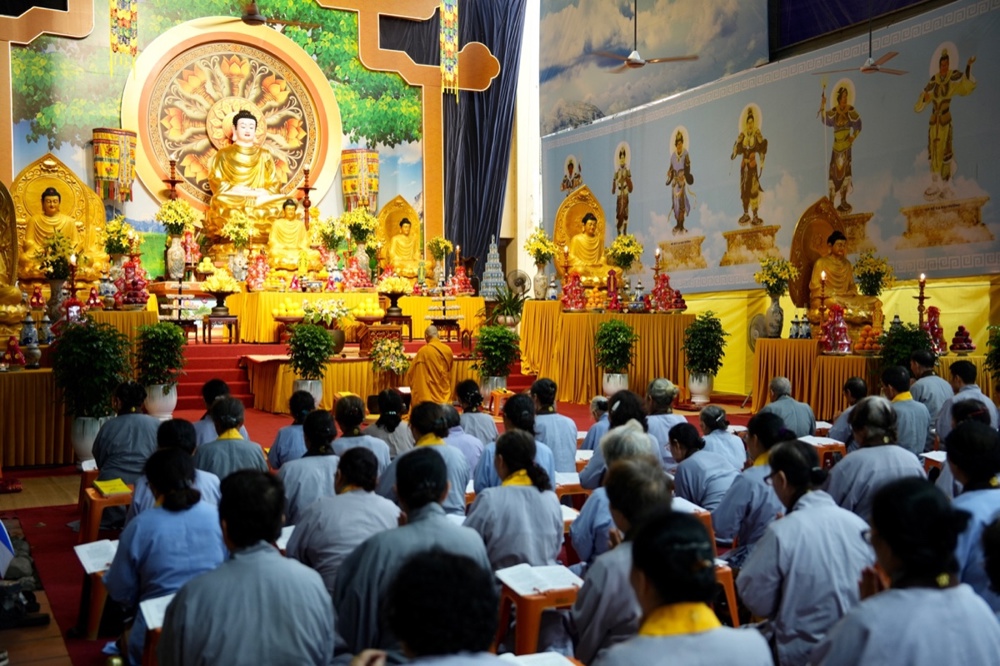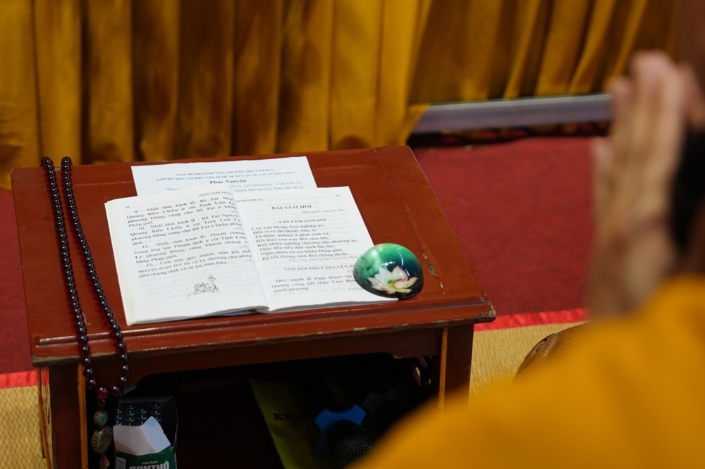 Cũng như 4 ngày qua - mỗi ngày 3 thời kinh, trong khói hương trầm quyện tỏa, đại chúng tiếp tục tụng kinh Dược Sư, niệm danh hiệu Phật; cầu nguyện quốc thái dân an, phong điều vũ thuận, người người được an vui hạnh phúc. Việc trì tụng kinh Dược Sư trong pháp hội cũng là dịp để mọi người cùng nhau hướng tâm về ánh sáng từ bi của Đức Phật Dược Sư – vị Phật biểu trưng cho năng lực chữa lành và hạnh nguyện cứu khổ cứu nạn.