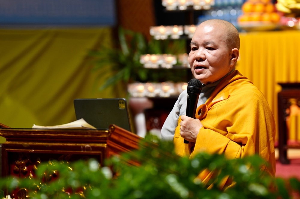 Trong không khí trang nghiêm, Ni sư Thích Tâm Chính - Ủy viên Ban Hoằng pháp TƯGH, Trụ trì chùa Vẽ (TP. Hải Phòng) đã có thời pháp thoại về chủ đề: “Ý nghĩa kinh Dược Sư dựa trên nền tảng căn bản của 12 điều nguyện của Đức Phật Dược Sư”.