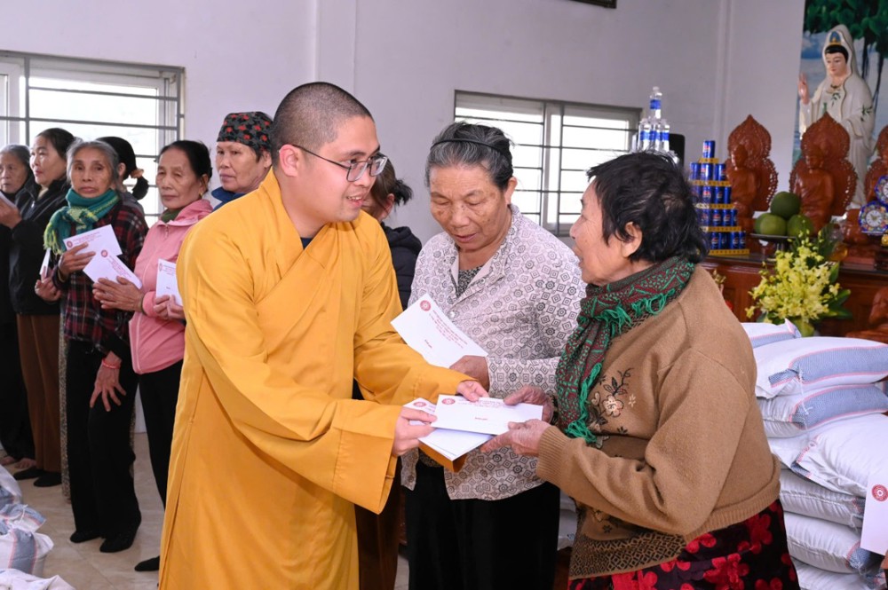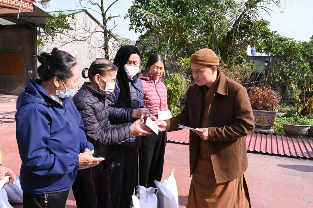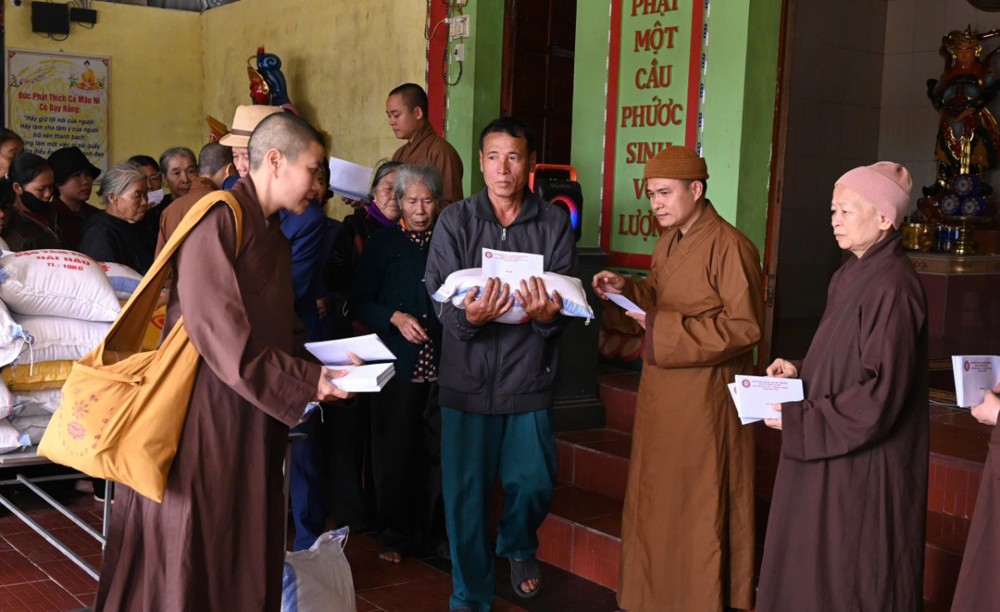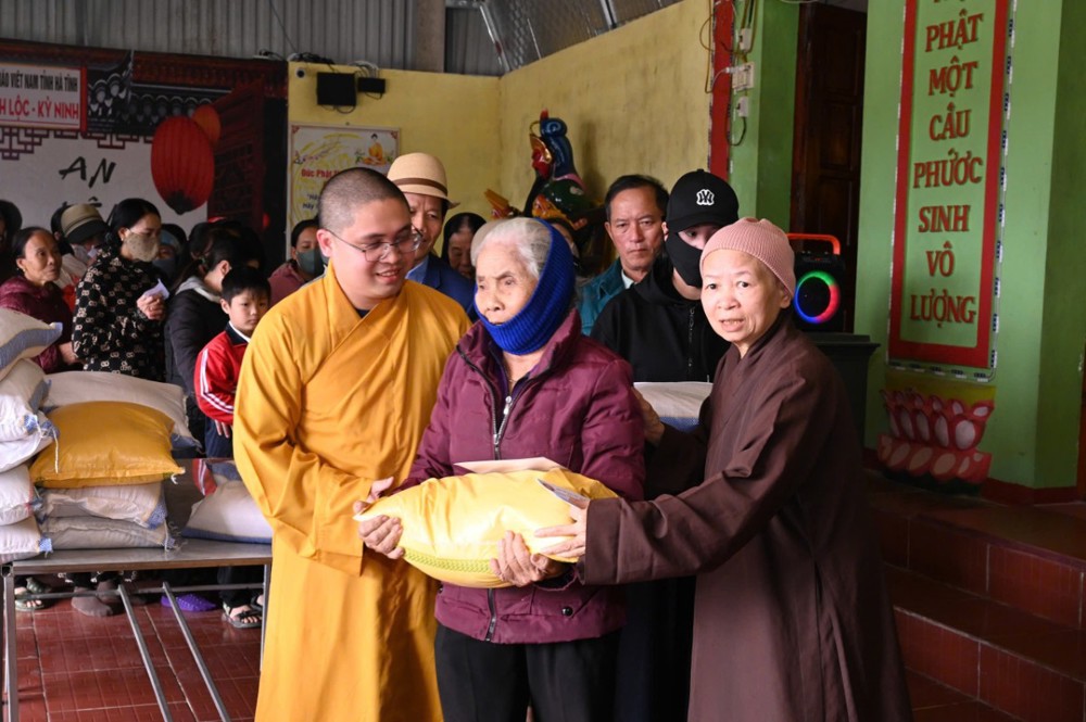 Tại các điểm bị ảnh hưởng nặng nề, đoàn đã trực tiếp đến thăm hỏi đời sống bà con, động viên tinh thần và trao những phần quà thiết thực nhằm chia sẻ khó khăn sau thiên tai. Theo đó tại điểm chùa Xuân Đài (X.Lộc Hà); chùa Thanh Phúc (X.Kỳ Anh) và chùa Vĩnh Lộc (X.Kỳ Linh) đoàn đã phát 310 suất quà gồm nhu yếu phẩm thiết yếu và tiền mặt (trị giá 200 triệu đồng), góp phần giúp các gia đình sớm ổn định cuộc sống.