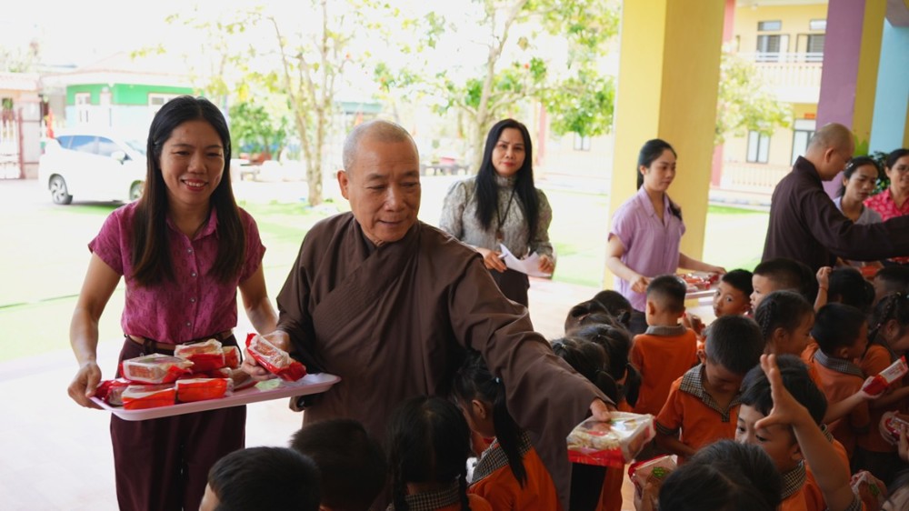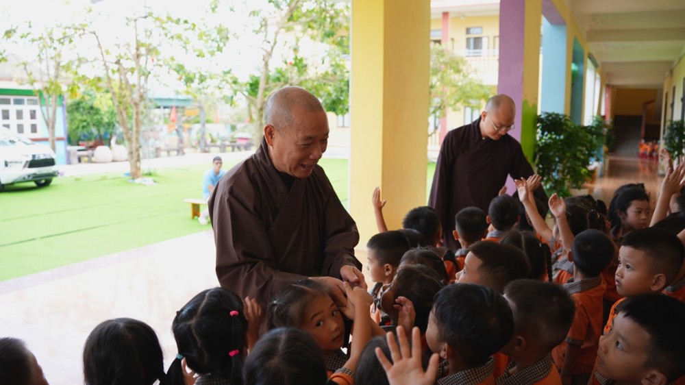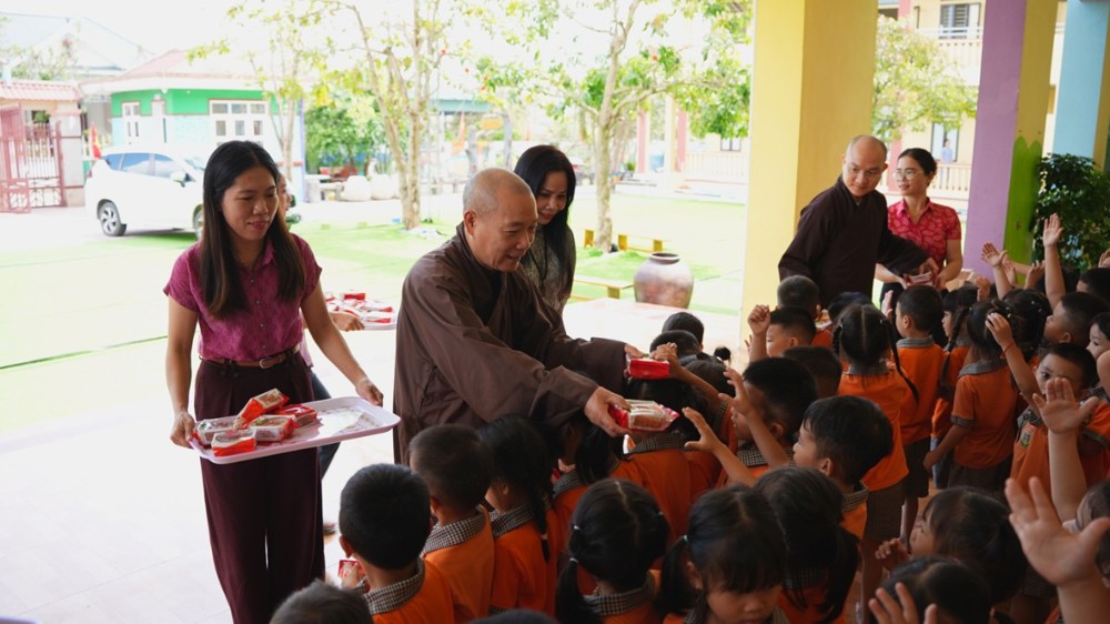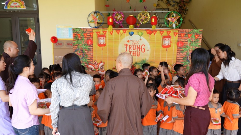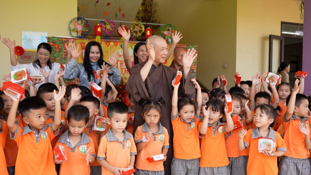 Cô và trò nhà trường vô cùng phấn khởi khi được đón tiếp Hòa thượng Thích Bảo Nghiêm. Những bài hát Trung thu được các em đồng thanh hát bằng giọng ca trong trẻo, vui tươi. Trong niềm vui ấy, Hòa thượng đã trao tặng bánh trung thu cho các em và trao quà đến nhà trường.
