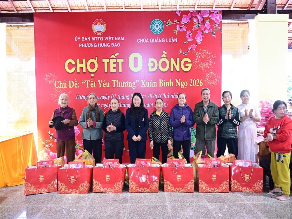 PSO – Sáng ngày 01/02/2026 (nhằm ngày 14 tháng Chạp năm Ất Tỵ), tại chùa Khánh Vân (Quảng Luận), Tổ dân phố Quảng Luận, phường Hưng Đạo, thành phố Hải Phòng, Ủy ban MTTQVN phường Hưng Đạo phối hợp cùng chùa Khánh Vân (Quảng Luận) tổ chức chương trình Chợ Tết 0 đồng, với chủ đề “Tết yêu thương” – Xuân Bính Ngọ 2026.