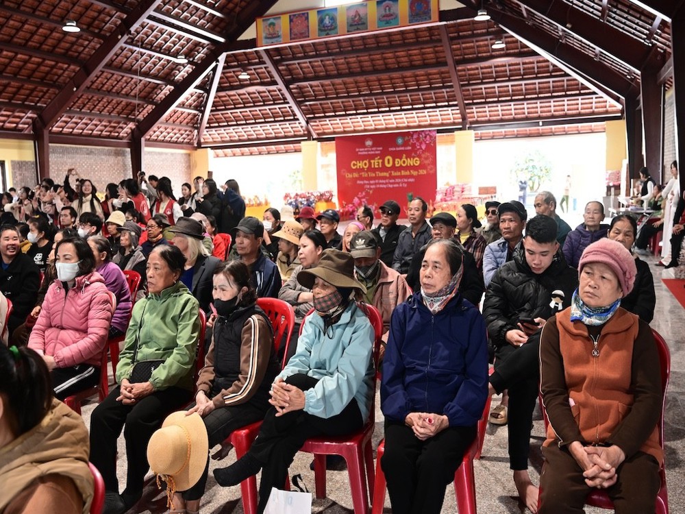 Trong khuôn khổ chương trình, thay mặt Ban Tổ chức, Đại đức Thích Quảng Nghĩa đã phát biểu khai mạc Phiên chợ 0 đồng với chủ đề “Tết yêu thương” – Xuân Bính Ngọ 2026. Trên tinh thần từ bi – cứu khổ – ban vui của đạo Phật, hằng năm, mỗi dịp Tết cổ truyền của dân tộc, chư Tôn đức Tăng Ni và Phật tử chùa Khánh Vân (Quảng Luận) đều tổ chức các hoạt động tặng quà Tết hoặc Phiên chợ 0 đồng nhằm hỗ trợ bà con có hoàn cảnh khó khăn tại địa phương. Năm nay, chùa tiếp tục phối hợp cùng Ủy ban MTTQVN phường Hưng Đạo tổ chức Phiên chợ 0 đồng, trao tặng hơn 300 phần quà đến các hộ gia đình khó khăn trên địa bàn phường Hưng Đạo, thành phố Hải Phòng.