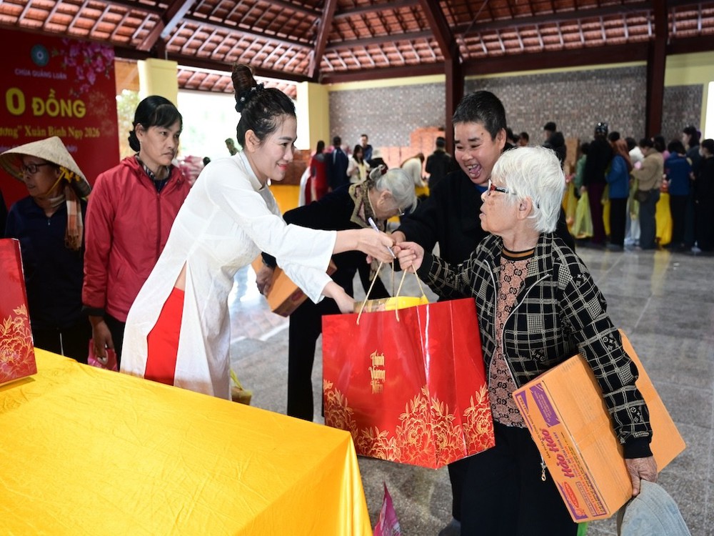 Bà khẳng định, thành công của chương trình là minh chứng rõ nét cho sự phối hợp hiệu quả giữa chính quyền, Mặt trận Tổ quốc, các tổ chức tôn giáo và nhân dân địa phương. Những phần quà được trao tặng không chỉ giúp bà con đón Tết đủ đầy hơn mà còn tiếp thêm niềm tin, nghị lực để vươn lên trong cuộc sống. Trước khi kết thúc bài phát biểu, bà kính chúc Đại đức trụ trì, chư Tôn đức Tăng Ni, quý Phật tử, các nhà hảo tâm, mạnh thường quân và toàn thể nhân dân đón một mùa xuân mới an khang, thịnh vượng, hạnh phúc.