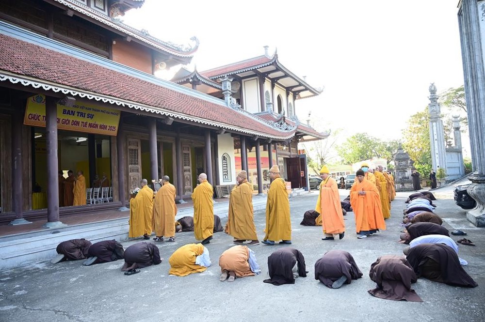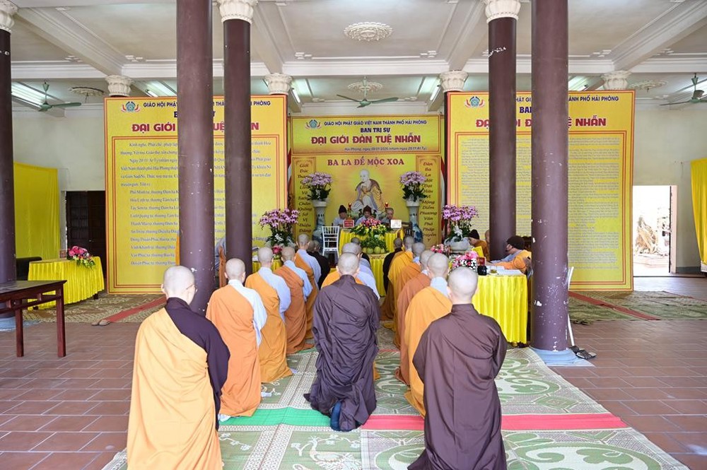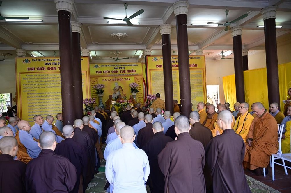 Tiếp đó, hai Hội đồng Giới sư đã vân tập tại 2 phận giới khác nhau và chính thức truyền giới cho các Giới tử. Giới đàn Tuệ Nhẫn đã diễn ra trang nghiêm và đã được thành tựu viên mãn, thực hiện theo đúng nghi thức cổ truyền của miền Bắc, đúng theo tiêu chí: “Đàn tràng trang nghiêm, Giới sư thanh tịnh, Giới tử chí thành đắc giới”. Được biết, Đại giới Tuệ Nhẫn tại Hải Phòng năm nay có tổng số có 37 Giới tử xin thụ giới. Trong đó có 06 Giới tử Tỳ Khiêu, 05 Giới tử Tỳ Khiêu Ni, 07 Giới tử Sa-di và 19 Giới tử Sa-di Ni.