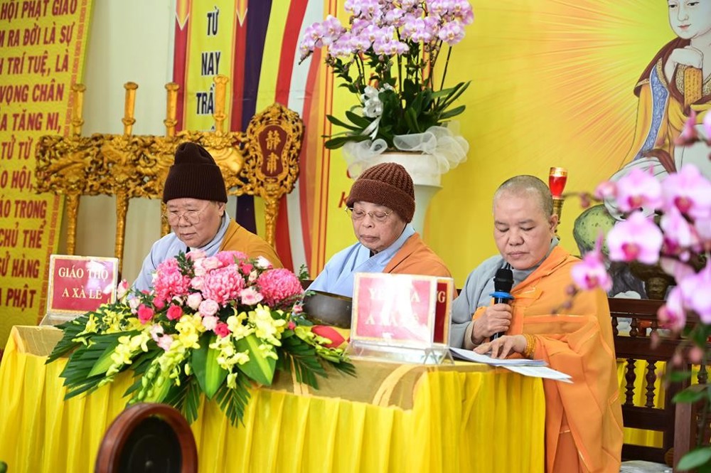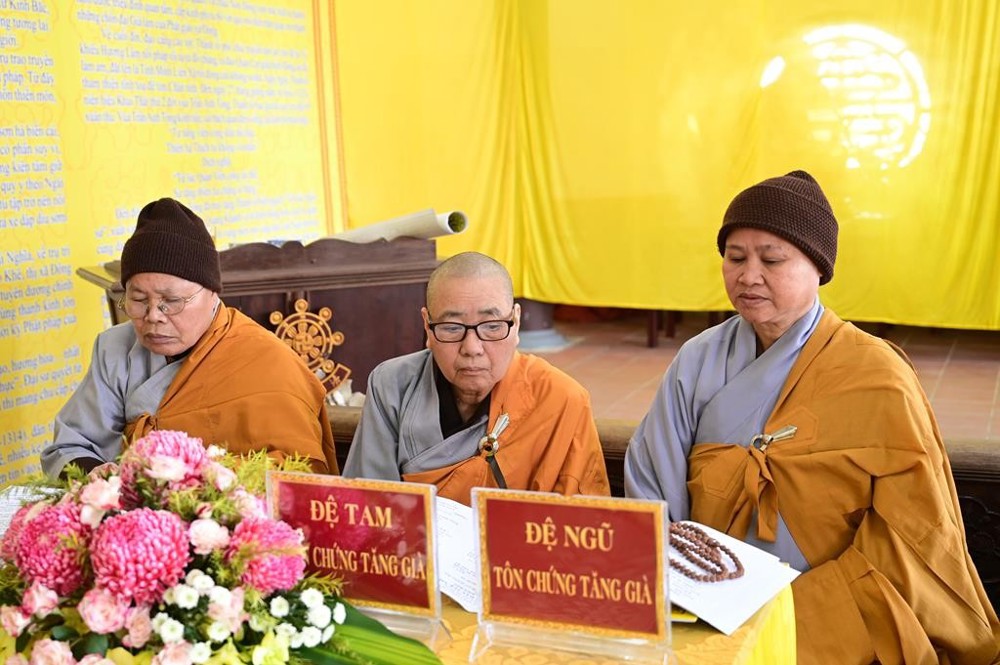 Giới đàn Ni cung thỉnh Ni trưởng Thích Đàm Kiên, Ủy viên thường trực BTS, Trưởng phân ban Ban Ni giới GHPGVN thành phố Hải Phòng ngôi đàn đầu Hòa thượng; Ni trưởng Tâm Chính, Ủy viên thường trực BTS, trưởng ban Ban từ thiện – xã hội GHPGVN thành phố Hải Phòng ngôi Yết Ma A Xà Lê; Ni sư Thích Đàm Lương, Trụ trì chùa Tây Sơn ngôi Giáo thụ A Xà Lê; cùng chư Tôn đức Tôn chứng sư: NS. Thích Tam Kính, NS. Thích Đàm Thơm, NS. Thích Diệu Đức, NS. Thích Đàm Thận, NS. Thích Diệu Hoàn, NS. Thích Bảo Hạnh, NS. Thích Đàm Hường.